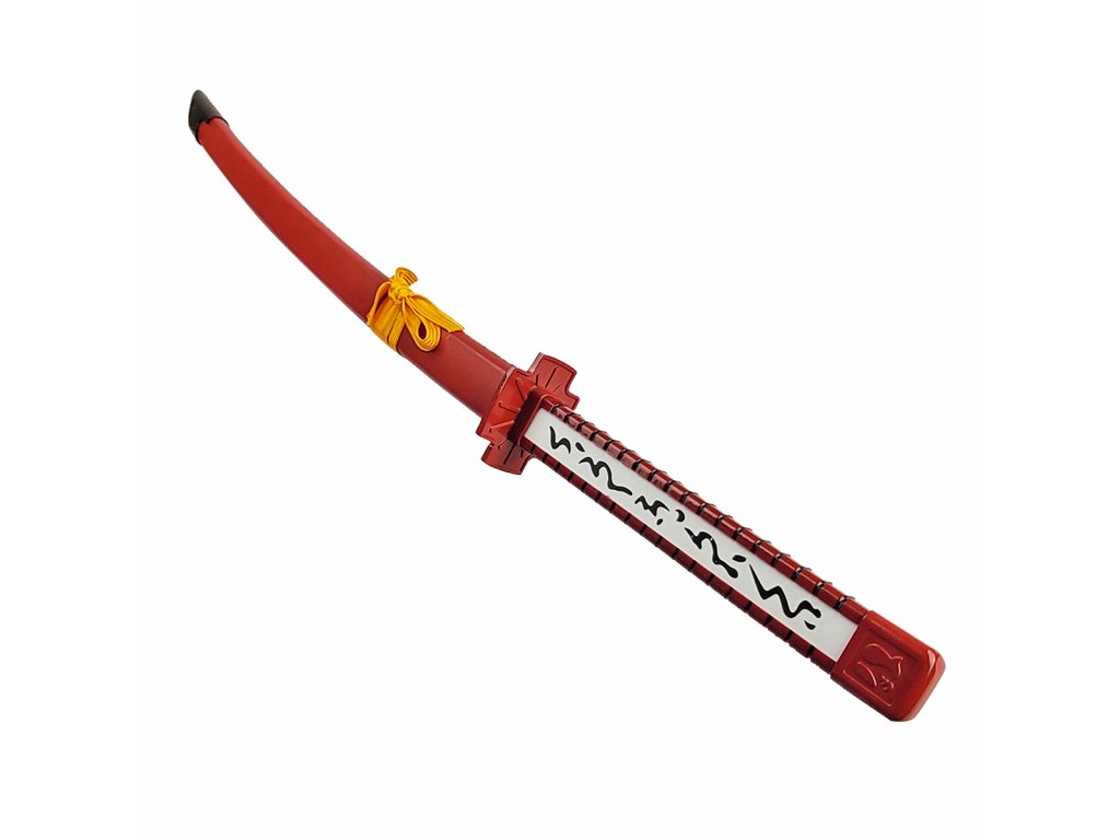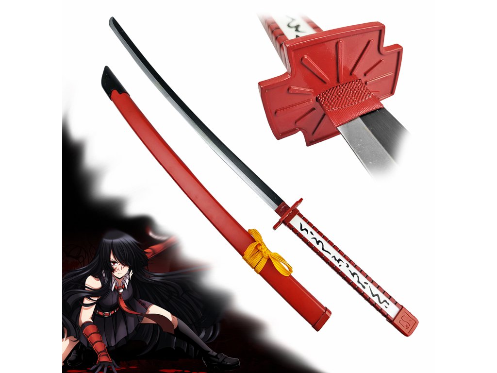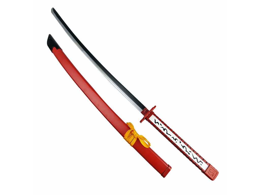Anime katana "MURASAME" Akame Ga Kill Prinášame Vám vernú repliku katany „MURASAME“, ktorú používa postava Akame v anime Akame Ga Kill. Táto replika meče nielen zachováva dizajnovú podobu svojho anime vzoru, ale taktiež prináša Vám kúsok tohto sveta do Vášho vlastného. Celková dĺžka katany činí 97,3 cm, čím táto replika vyniká svojim rozmerom a vernosťou originálnemu meču. Samotná čepeľ má dĺžku 65,8 cm, a ako je pri výstavnej replike obvyklé, je tupá pre bezpečnosť. Replika zachováva verne dizajn a vzhľad katany, ktorú nosila Akame. Meč je vybavený oceľovou záštitou krížového tvaru, ktorá oddeľuje čepeľ od rukoväte. Rukoväť s dĺžkou 28,9 cm je 1:1 podobná originálu, čo zaisťuje autenticitu a pohodlný úchop. K tomu všetkému patrí drevená pošva v červenej farbe, ktorá dokonale dopĺňa celkový vzhľad katany. Replika „MURASAME“ je ideálnym doplnkom pre cosplay, kostýmy alebo ako výstavný kus pre fanúšikov anime Akame Ga Kill. Aj keď ostrie tohto meče je tupé, prináša Vám toto umelecké dielo kúsok kúzla tohto fantastického sveta. Buďte majiteľom tejto repliky a staňte sa súčasťou dobrodružstva postavy Akame. "Zabila som veľa ľudí!" Akame, krásne červenovlasé dievča, ktoré má výrazné červené oči. Na prvý pohľad nenápadná, za touto škrupinou sa však skrýva drsná a krvilačná bojovníčka a hlavná antihrdinka anime Akame Ga Kill. Táto bojovníčka sa oháňa katanou menom "MURASAME", prekliatou čepeľou, ktorá dokáže zabiť človeka jedným rezom. Tento meč teraz môže patriť aj Vám a stať sa súčasťou Vašej zbierky!Dodatočné parametre
