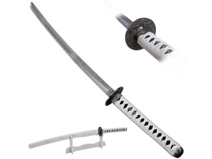 Luxusne zdobenú katanu " WHITE DRAGON " vám bude každý závidieť. Tento nádherný samurajský meč bude vďaka svojej exkluzívnej farbe a prevedeniu čerešničkou na torte každého interiéru. Honosne zdobená záštita a čisto biela rukoväť s kovovým zakončením v podobe čínskych vzorov prepožičia vášmu izbe a bytu úplne nový rozmer. Pošva z pravého dreva na sebe nesie skvostné rezby v tvare draka, ktorý je vo východnej Ázii symbolom múdrosti, pokoja a harmónie. Ďalej sa nachádza rezba v tvare slnka, ktoré symbolizuje Japonsko ako krajinu vychádzajúceho slnka. Pošva končí kovovou ozdobou, ktorá svojím motívom nadväzuje na zvyšok katany. Medená záštita aj ozdobné zakončenie pošvy sa prirodzenou oxidáciou sfarbujú ľahko do zelena, čím zbrani prepožičiavajú nádych staroby a histórie. Na pošve kúsok od záštity sa nachádza čisto biela stužka, ktorá umožňuje zavesenie na stenu či pripevnenie k opasku. Táto perla medzi dekoratívnymi katanami sa tak ľahko môže stať vaším neprehliadnuteľným doplnkom pri akciách zameraným na Japonsko či východnú Áziu ako takú. Lesklá čepeľ má dĺžku 68 cm a po celej jej dĺžke sa nachádzajú ozdobné vlnky - hamon. Čepeľ je svojím prevedením skôr dekoratívna, avšak aj napriek tomu si zachováva celkom slušné kissaki, čiže špičku. Katana má ostrie, to je však skôr symbolického charakteru a nie je určené na sekanie. Katana "WHITE DRAGON" vďaka svojej bielej farbe pôsobí veľmi čistým, až posvätným dojmom. Tento skvost je navyše aj mimoriadne cenovo dostupný a môže byť váš už za pár eur!Dodatočné parametre