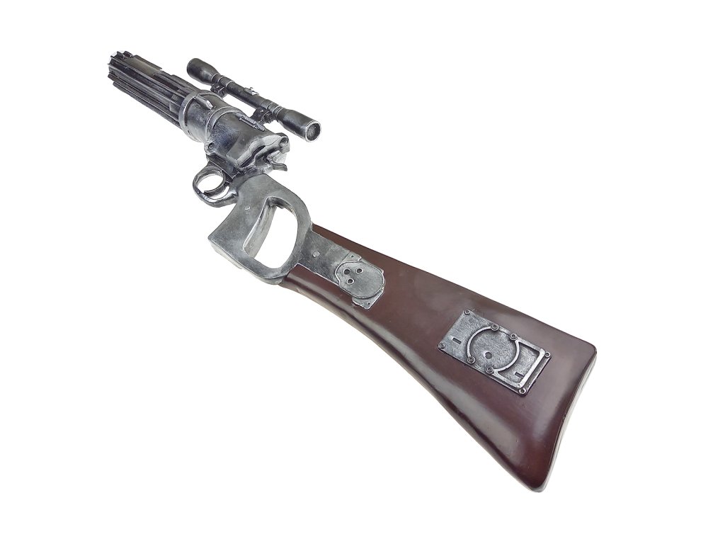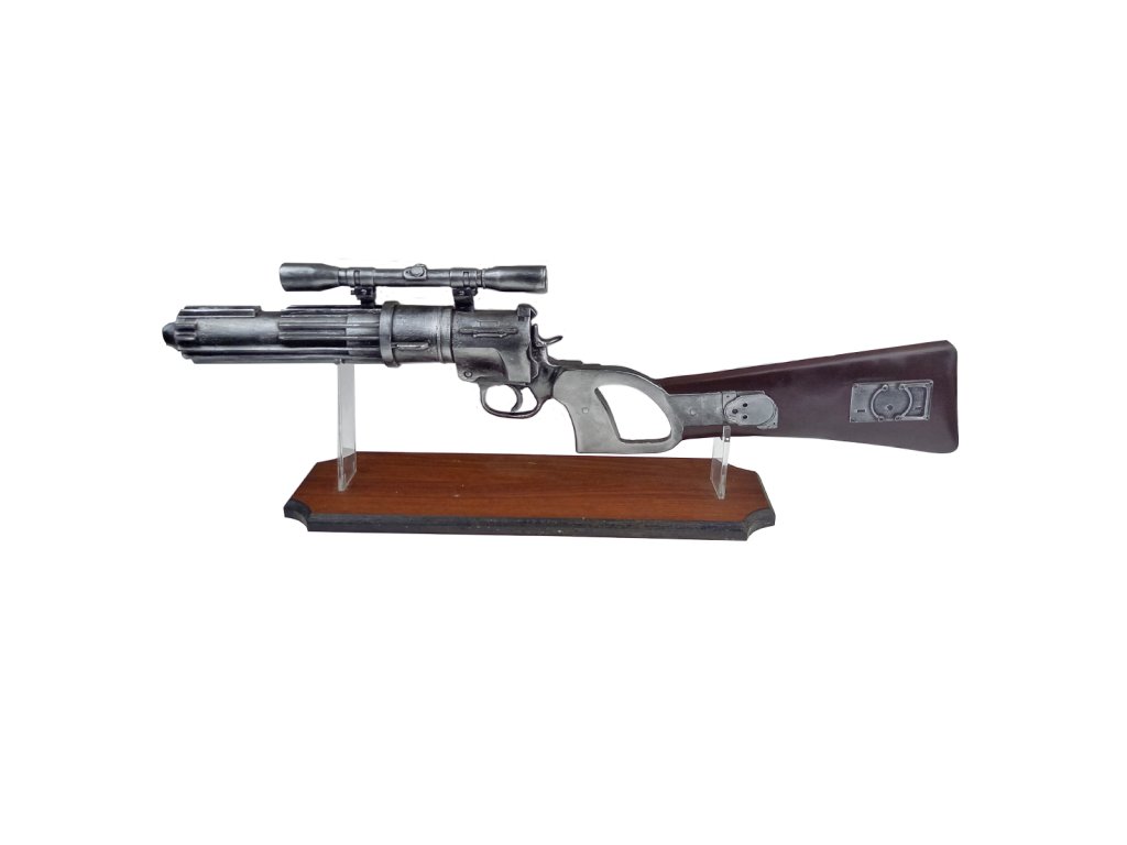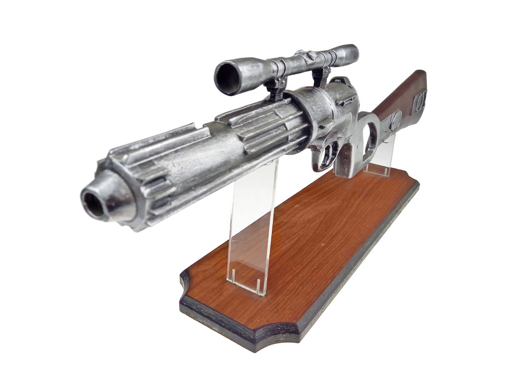 Masívne kus živice, detailne spracovaný do Blasterovej pušky EE-3 Carabine "BOBA FETT", z legendárnej Ságy z preďalekej galaxie STAR WARS! Replika vo veľkosti 1: 1 je takmer totožná s filmovou predlohou legendárneho lovca ľudí. Detailné spracovanie Vám na prvý pohľad bude pripadať, ako by sa jednalo o funkčnú strelnú zbraň. Avšak, jedná sa len o výstavný kúsok. Súčasťou produktu je tiež pevný stojan s drevenou základňou a dvoma transparentnými nožičkami, ktoré bezpečne udržia pušku, ktorá bude ako v perinke. Blasterová puška EE-3 Carabine "BOBA FETT", je perfektným kúskom do Vašej STAR WARS zbierky. Dokonale ozdobí Vašu domácnosť a tiež sa stane skvelým doplnkom k Vášmu cosplay. Takže, ak sa chcete pridať k lovcom ľudí a byť rovnakou legendou, ako Boba Fett. Blasterová puška EE-3 Carabine "BOBA FETT" tu čaká priamo na Vás.Dodatočné parametre