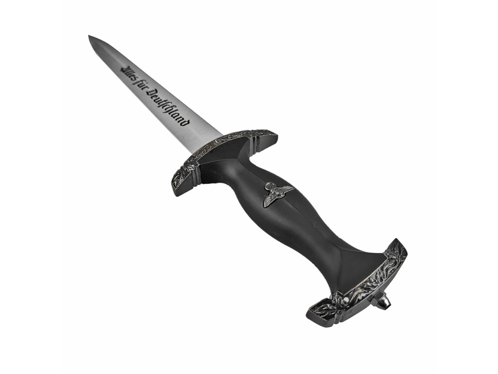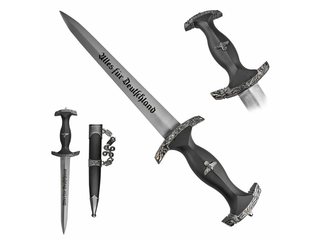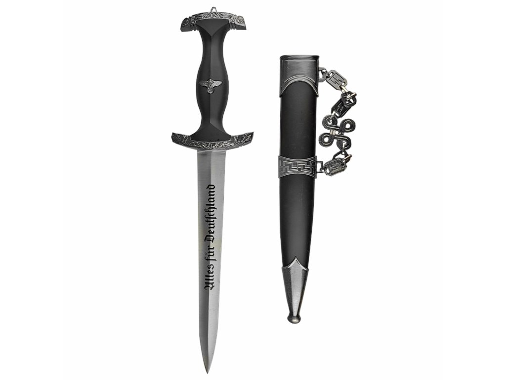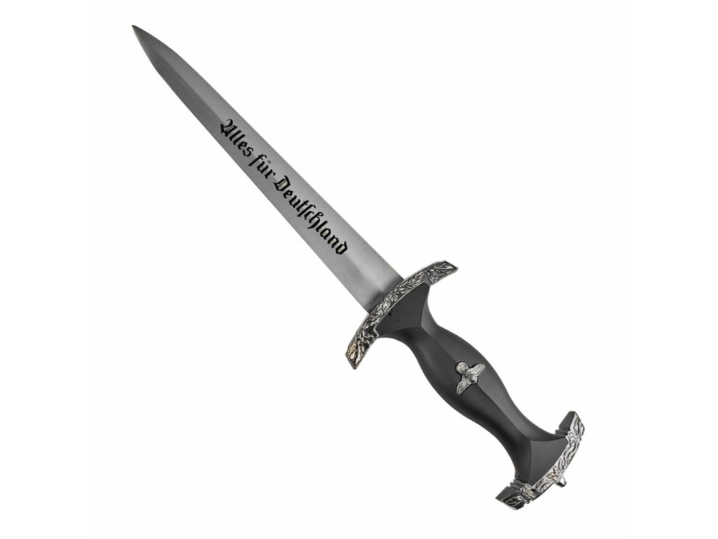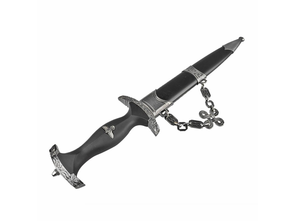 Čierna dýka "WAFFEN SS" - 1936 Predstavejeme vám presne spracovanú repliku dýky, ktorá kedysi symbolizovala jednotky Waffen SS. Tento historický kus je vytvorený pre zberateľov a historikov, ktorí ocenia presný dizajn, ktorý odráža éru a atmosféru danou dobou. Celková dĺžka dýky je 36 cm, s čepeľou s dĺžkou 22,2 cm, vyrobená z nerezovej ocele N420. Táto čepeľ, aj keď je tupá z výroby, zachováva autentickosť a umožňuje zberateľom obdivovať detailné prevedenie. Napriek svojej výstavnej povahe je táto dýka schopná hravo otvoriť listy. Na povrchu čepele nájdeme nemecký vojenský slogan "Alles für Deutschland" - "Všetko pre Nemecko". Je dôležité zdôrazniť, že táto replika je zameraná na historický výskum a pre zberateľov. Nie je stanovená na nesprávne použitie alebo propagáciu extrémistických názorov. Povrch čepele je ozdobený nápisom, ktorý označuje historický kontext. Súčasťou tejto repliky je pevné plastové púzdro, vybavené retiazkou, ktoré umožňuje nosenie dýky na opasku. Prineste si do svojej zbierky kus histórie, ktorý rešpektuje minulosť a umožní vám študovať a porozumieť udalostiam spojeným s touto epochou.