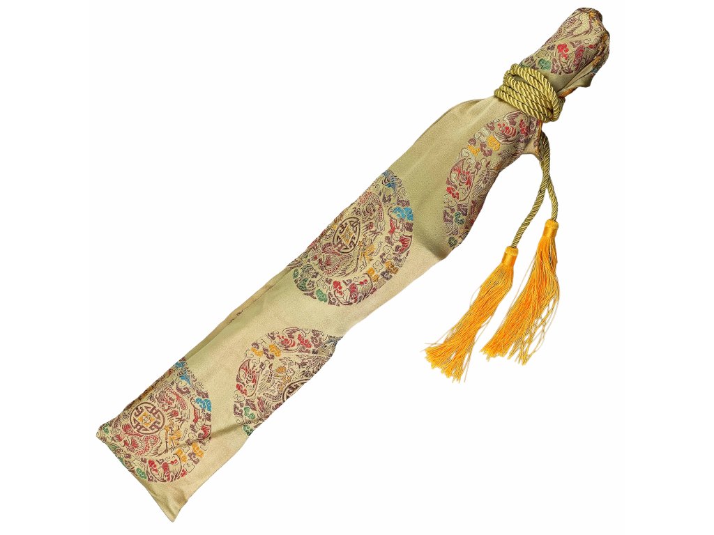 Červené samurajské tanto "KUNIMITSU" s drevenými boxom Červené samurajské tanto "KUNIMITSU" s dreveným boxom, je vskutku krásnym príkladom tohto malého meča. Čepeľ s približnou dĺžkou 30 cm bola krátka, ale smrtiaca. Tvorená z kvalitného železa a kalená, bola schopná ľahko prejsť hociktorým materiálom. Tsubo je sfarbená do čierna a ozdobená niekoľkými výrezmi. Rukoväť je spracovaná tradične a to s čiernym opletením a je vyrobená z kvalitného dreva. Rovnako tak červeno sfarbená pošva, ktorá na tanto padne, ako uliata. Súčasťou sady je aj set na údržbu zbrane a tiež ozdobné červené rúcho, do ktorého môžete tanto uložiť. V neposlednom rade je tu aj stojanček elegantnej čiernej farby, ktorý celej kolekcii dodáva ešte väčšiu vierohodnosť a to všetko je zabalené v prekrásnom drevenom boxe. Tak neváhajte a rozšírte svoju zbierku už dnes! Tanto je tiež plne funkčné, je teda určené k miernemu sekaniu, avšak plný kontakt s tvrdým materiálom či inou zbraňou sa neodporúča. Ďalej môže byť použité, ako replika pri divadelnej hre, či inom vystúpení.