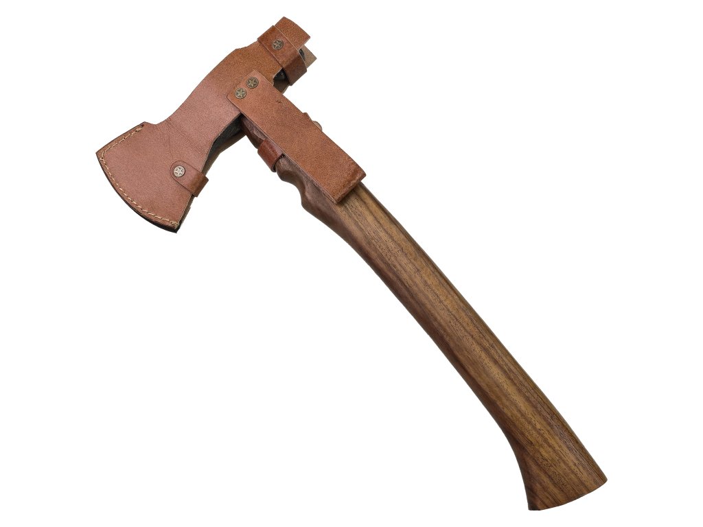 Exkluzívna sekera kombinujúca tradičné remeselné spracovanie s modernými materiálmi. Čepeľ je vyrobená z prekladanej ocele, ktorá zaručuje výnimočnú ostrosť a odolnosť. Porisko z kvalitného olivového dreva je starostlivo lakované, aby odolalo vlhkosti a zachovalo si pohodlný úchop. Sekera je doplnená o praktické kožené puzdro, ktoré je možné ľahko pripevniť k opasku, a oceníte ho pri outdoorových aktivitách.