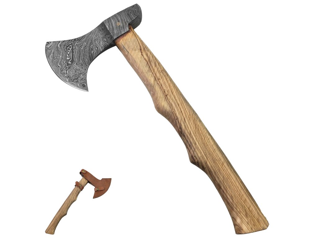 Exkluzívna sekera kombinujúca tradičné remeselné spracovanie s modernými materiálmi. Čepeľ je vyrobená z prekladanej ocele, ktorá zaručuje výnimočnú ostrosť a odolnosť. Porisko z kvalitného jaseňového dreva je starostlivo lakované, aby odolalo vlhkosti a zachovalo si pohodlný úchop. Sekera je doplnená o praktické kožené puzdro, ktoré je možné ľahko pripevniť k opasku, a oceníte ho pri outdoorových aktivitách.
