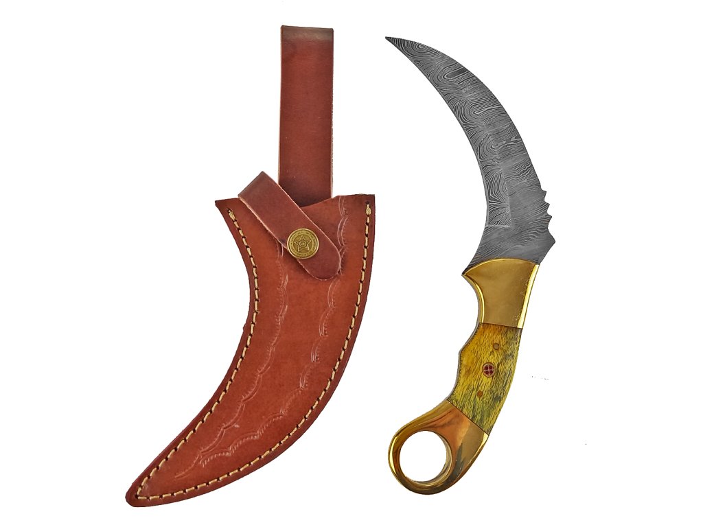 Damasková čepeľ karambitu "GOLDEN TALON" je vyrobená z kvalitnej damaškovej ocele. Damašková oceľ je utváraná z ocelí 1095 a 15n20.
