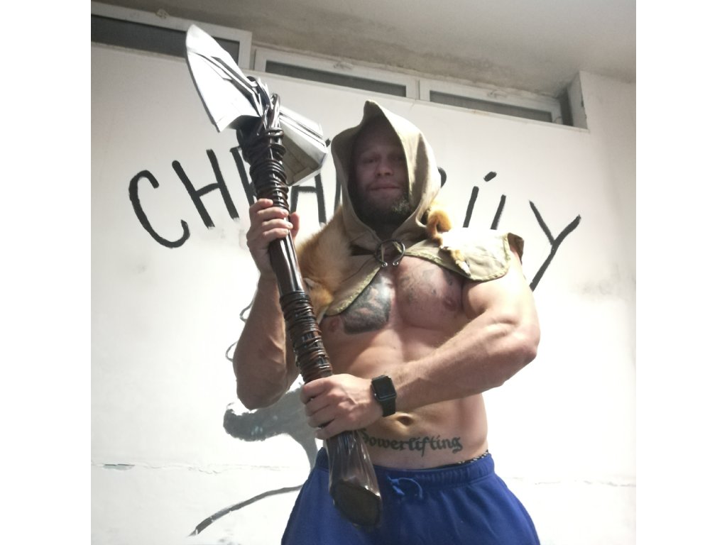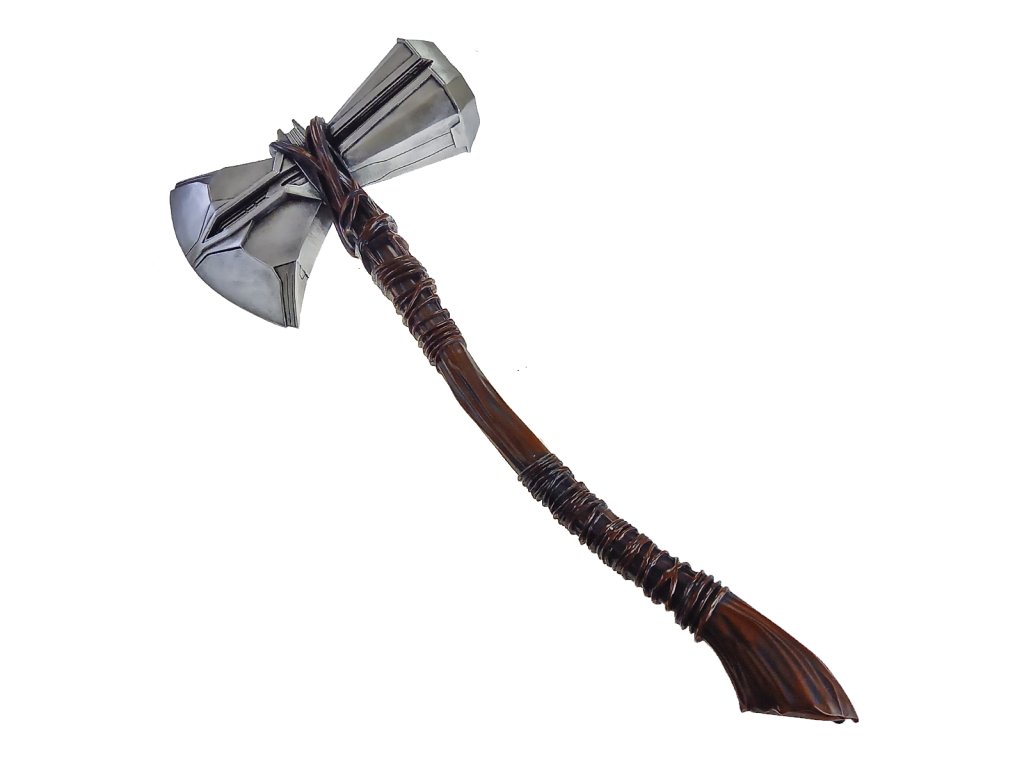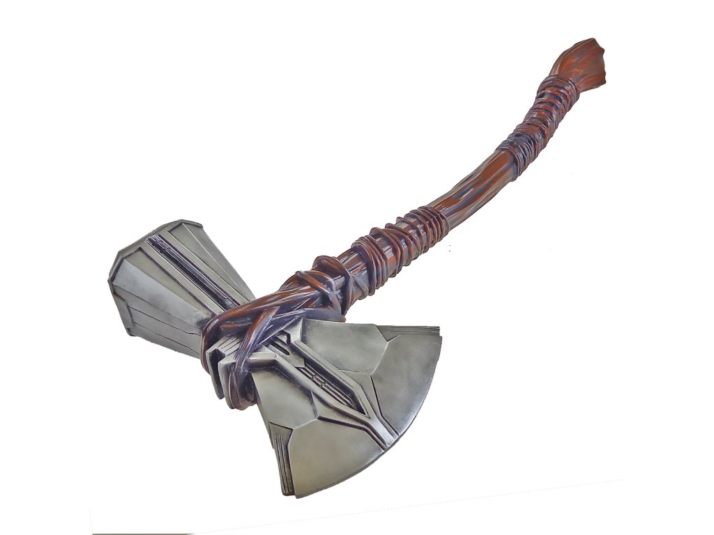"Ako dlho potrebuješ pre ohrev?" "Pár minút možno viac prečo?" "Otvorím tie dvere" "To je samovražda." "Rovnako ako čeliť Thanosovi bez tejto sekery!" Toto je dialóg boha hromov a bleskov Thora a kráľa trpaslíkov z Nidaveliru. Koncentrovaná sila hviezdy spolu mocnou rudou Ur dali vzniknúť novej zbrani pre Thora. "STORMBREAKER AXE" .Ovládnete túto božskú silu ?! Kto by si nevybavil legendárnu scénu pozväzovanú zbrusu novej zbrane pre Thora a to mocnej sekery "STORMBREAKER AXE" .Teraz si aj tento kúsok môžete užiť v detailnom nádherne spracovanom prevedení aj Vy! Táto replika sekery "STORMBREAKER AXE" je vernou replikou originálu z filmov Avengers Infiniti War a Avengers Endgame. Veľkosť tejto repliky je 1:1 a vďaka tomu sa Vám do ruky dostane verný kúsok plný prekrásnych detailov! Sekera tohto kúsku "STORMBREAKER AXE" je úplne identickou reprodukciou originálnej filmovej sekery s tým rozdielom, že sa jedná o reprodukciu z dvojzložkovej živice s oceľovým jadrom. Hlavica je farbená a krásne vytieňovaná, takže rozdiel v materiáloch spoznáte až pri blízkom prehliadnutí zbrane. Hlavica sekery je potom zdobená taktiež reliéfmi ako originál z filmového plátna. Porisko sekery "STORMBREAKER AXE" je opäť vernou replikou originálu každým colom. Sekera ako taká je síce monolit, ale ani tak Vás prevedenie neochudobní o krásne spracované zaviazanie vetvami ako od pravého Groota. Detaily ešte viac umocňuje imitácia šľahúňov po dĺžke poriska, takže sekera budí dojem, ako by sa naozaj jednalo o surovú vetvu. Sekera "STORMBREAKER AXE" je kúskom, ktorý poteší každého fanúšika Marvelu, vďaka ktorej môžete dokonale vylepšiť svoj kostým Thora a pritom Vám neupadne ruka z nosenia našej oceľovej varianty.Dodatočné parametre