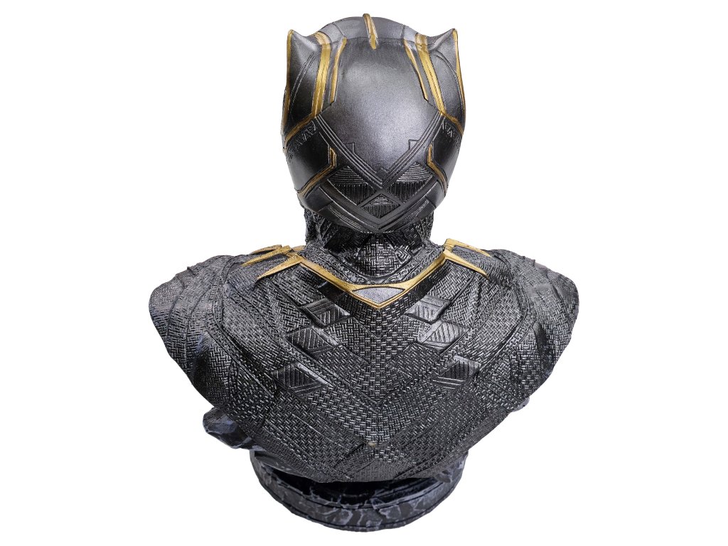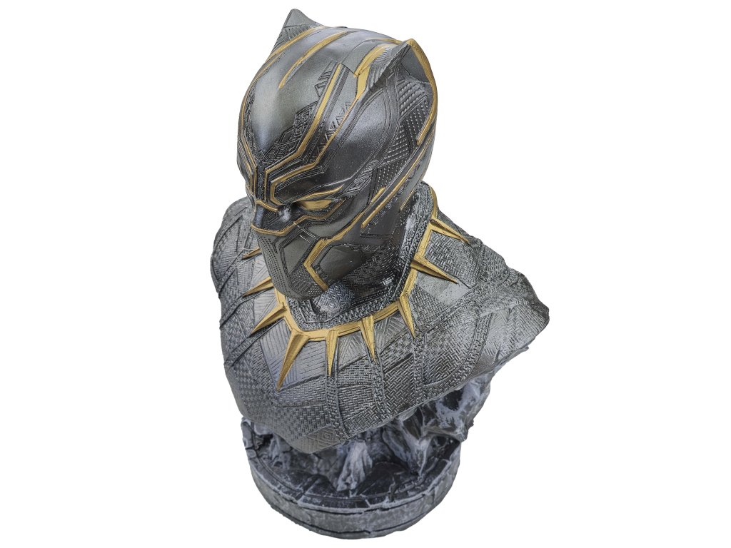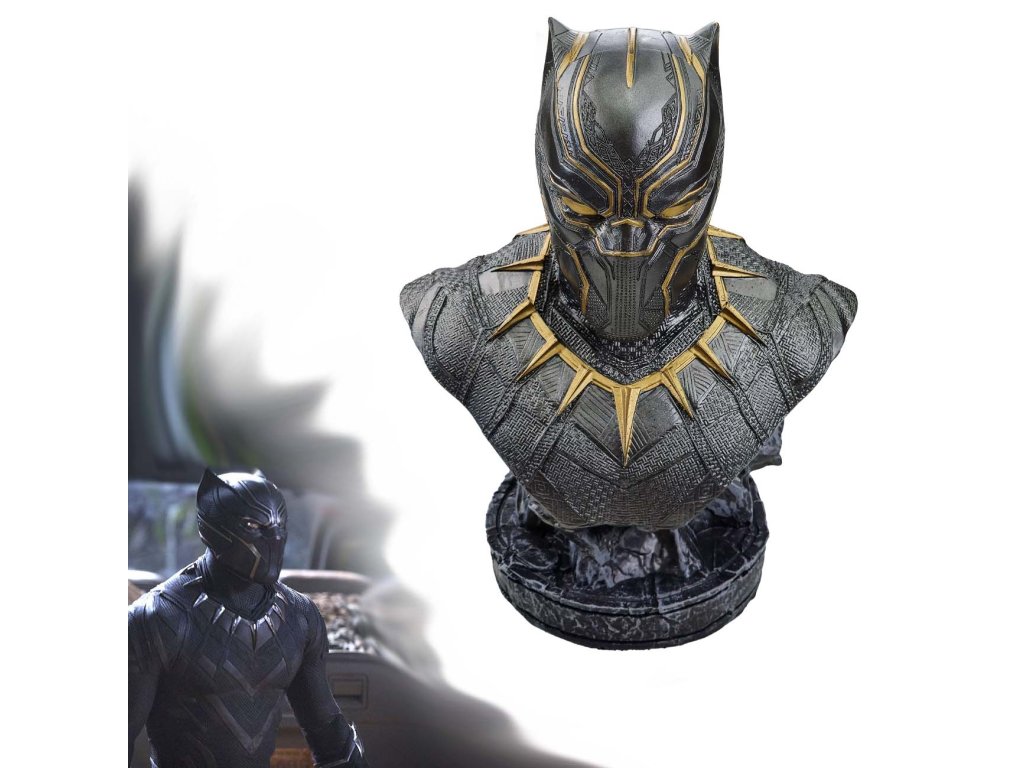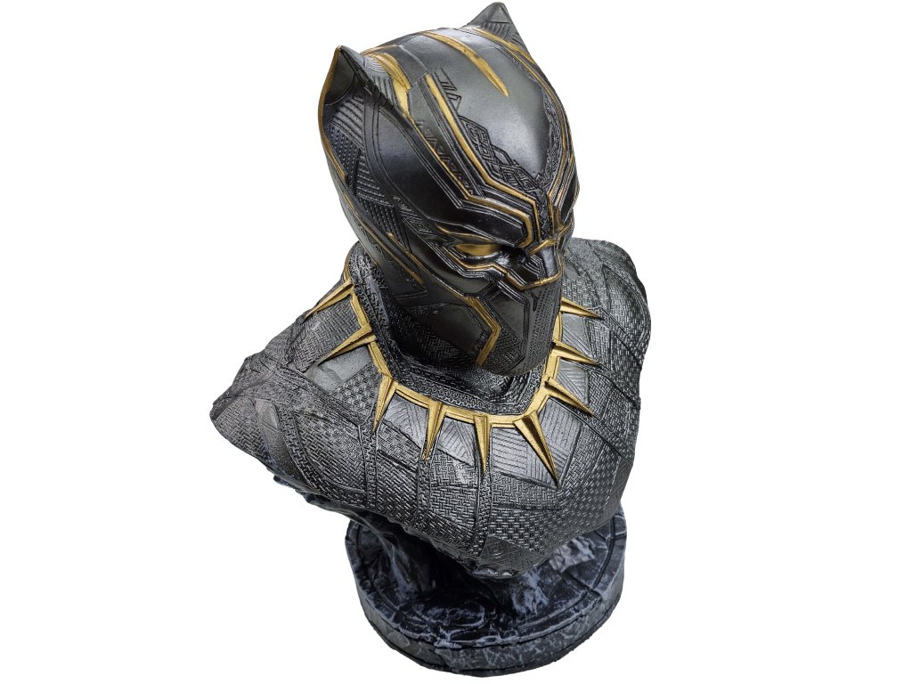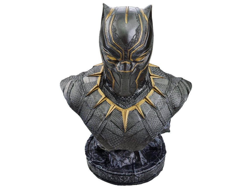 Detailná busta "BLACK PANTHER" živice "Wakanda navždy!" T'challa, syn kráľa T'chaky, Wakandský princ a maskovaný superhrdina Black Panther. Bojovník v panteriom obleku, ktorý drží stráž nad Wakandou. Black Panthera môžete poznať hlavne ako člena Avengers. Najprv sa s nimi stretol v snímke Kapitán Amerika - Občianska vojna. Tu sa T'challa postavil na stranu Iron Mana aby sa stretol s Winter Soldierom a pomstil tak smrť svojho otca. Náš tím Vám teraz prináša bustu tohto komiksového hrdinu! Teraz aj Vy môžete mať doma svojho Black Panthera. :) Pre fanúšikov a nadšencov do komiksov, tu máme špeciálny kúsok, ktorý nádherne ozdobí interiér Vášho bytu či domu. Obzvlášť fanúšikovia Black Pantherasi prídu na svoje. :) Detailne spracovaná busta legendárneho Iron Mana Vás na prvý pohľad zaujme svojimi prepracovanými detailmi. Busta je vysoká cca 33 cm. Celá je vyrobená z pevnej živice a ručne maľovaná. Váha celého produktu je presne 1773 g. Dokonalý doplnok do Vašej komiksovej zbierky, skvelý darček pre fanúšika Marvelu a prevažne Black Panthera – Avengers. Black Panthera je možné zahliadnuť vo filmoch na streamovacej službe od Disney.Dodatočné parametre