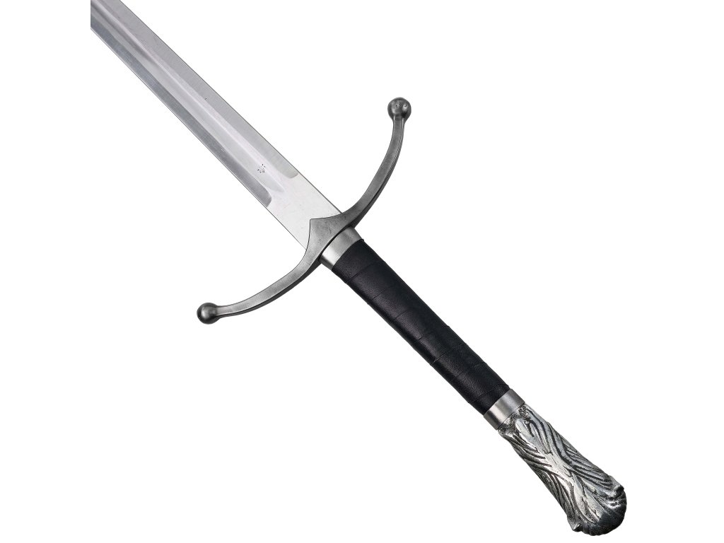 Čepeľ je ručne kovaná z vysoko kvalitnej pružinovej ocele 14260 (60Si7), ktorá je známa svojou húževnatosťou a pružnosťou. Ostrie má bezpečnú hrúbku 3 mm, čo zaisťuje vhodnosť pre plne kontaktný boj. Ťažisko meča je starostlivo vyvážené tak, aby poskytovalo ideálnu kontrolu a rýchlu reakciu pri šerme. Záštita (crossguard) je elegantne tvarovaná a zaisťuje vynikajúcu ochranu ruky, zatiaľ čo masívna hlavica v tvare vlčej hlavy dodáva meču osobitý charakter aj vizuálnu silu.