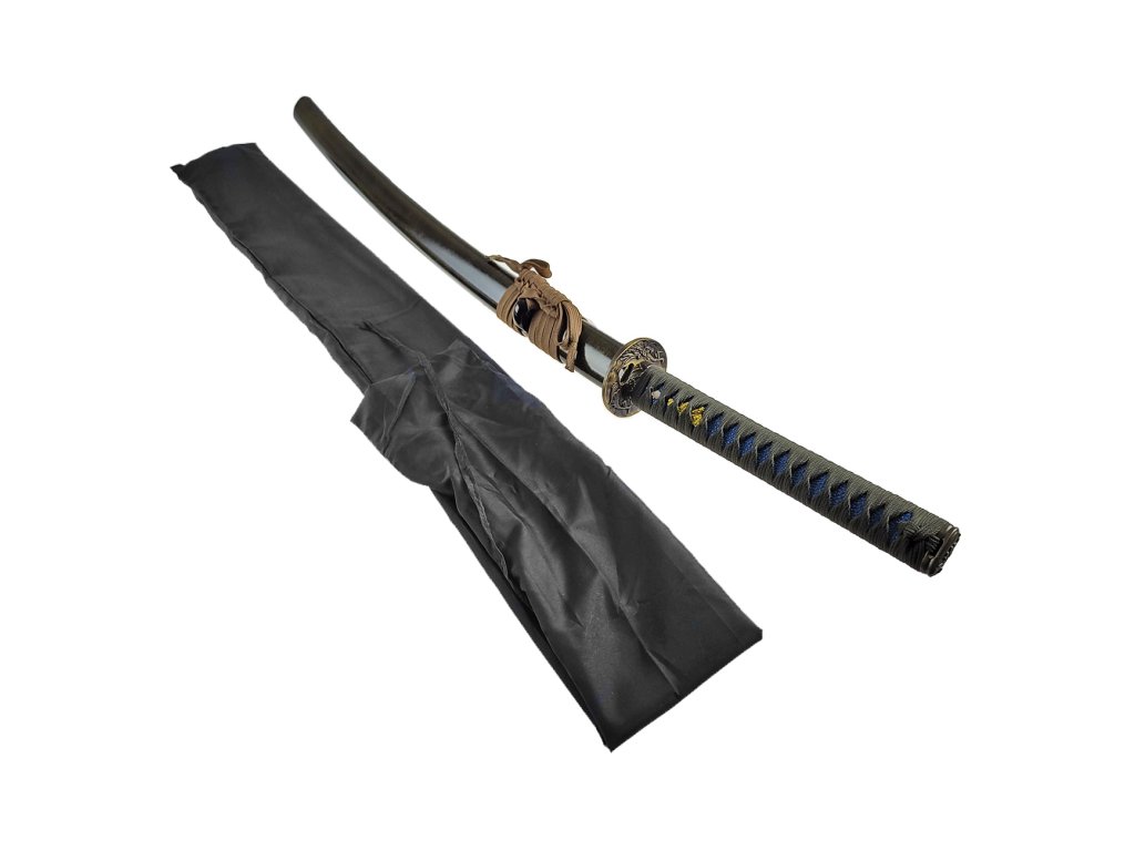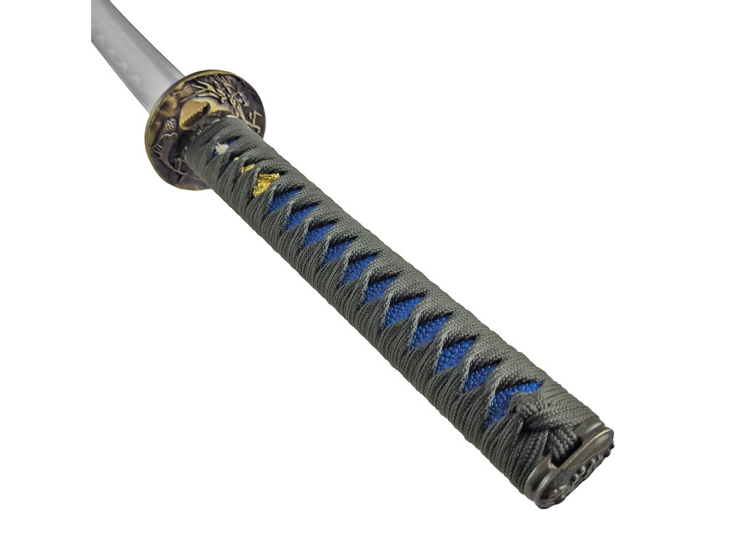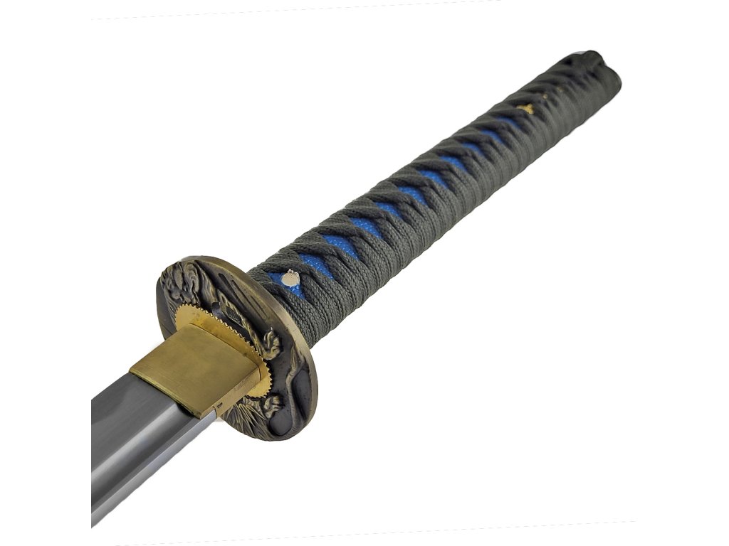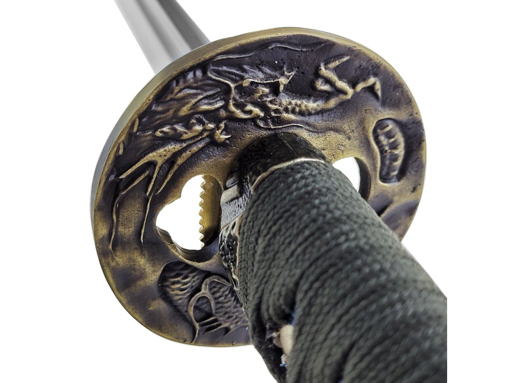 Honosná katana "SUIREN" funkčná! Fanúšikovia Samurajov a Japonskej kultúry si prídu na svoje. Naskladnili sme totiž nový kúsok, ktorý môže ozdobiť nielen Vašu obývačku, jedáleň, ale zlepšiť Vašešermiarske schopnosti. Predstavejeme Vám honosnú katanu "SUIREN", ktorá je vhodná na prenácvik sekov, tak kosenie bambusových rohoží a ďalších materiálov. Dĺžka čepele katany "SUIREN" je od špice k záštite 70 centimetrov. Čepeľ oplýval sklým povrchom a jej ostrie je už z výroby ostré. Vďaka zapusteniu čepele do rukoväte, kde je zabezpečená štipce sa jedná o funkčné nástroj, nie len o výstavný kúsok. Meč je dostatočne pevný pretože s ním možno trénovať napr. tameshigiri na bambusových rohožiach. Rukoväť meče začína mosadznou tsubou (záštitou), ktorá je jednoducho zdobená reliéfom vyobrazujúcim draka. Základ rukoväte je vyrobený zedrevaa prekrytý vrstvou gumovej kópie rajnočíkože. Tú prekrýva čierny oplet, vyrobený z jemnej bavlny, ktorá je na dotyk veľmi príjemná a nemá tendencia preklzovať. Rukoväť je zakončená ozdobnou, mosadznou kashirou (zakončenie rukoväte), ktorá je tiež ozdobená reliéfom, vyobrazujúcim lekno. Súčasťou meče je tiež pevná puzdro dreva v čiernej farbe s lesklelakovaným povrchom. Súčasťou je pevný čierny háv, ktorý slúži na bezpečnú prepravu meče.