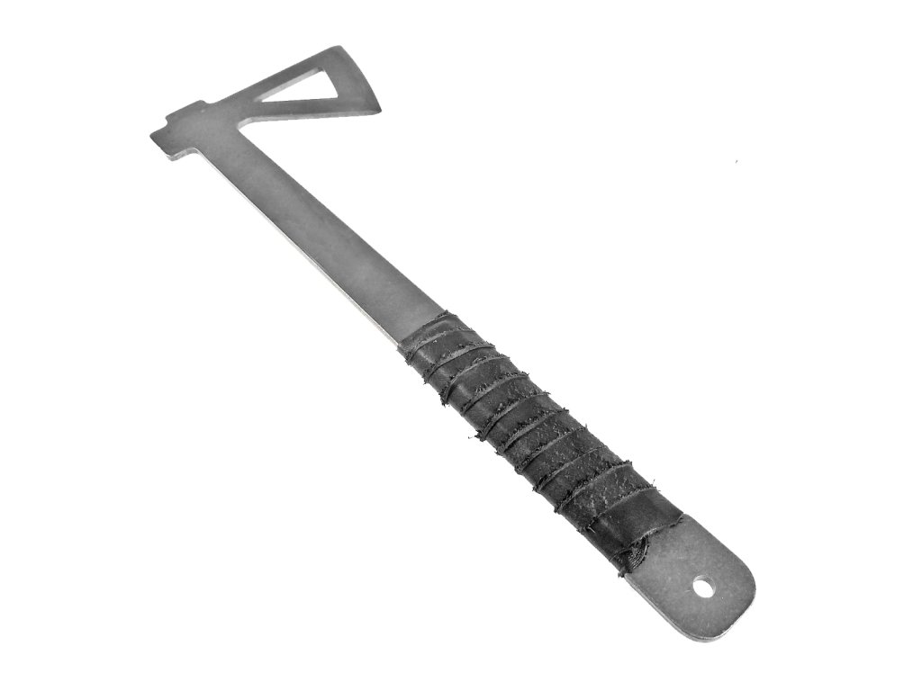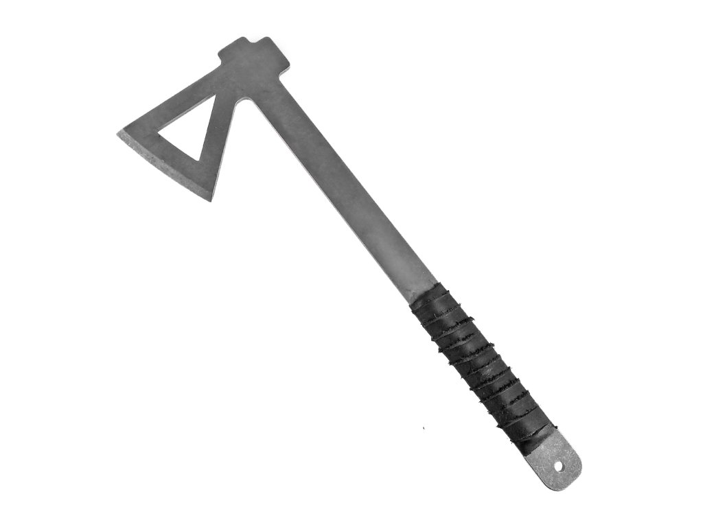 Kovaný vrhací tomahawk"NSCHO-TSCHI" Čepeľ tradičného trojuholníkového tvaru je vyrobená z kvalitnej kovanej ocele 14260 a je tak takmer nezničiteľná a prežije naozaj hardcorové zaobchádzanie, či už sa jedna o rezanie a sekanie dreva, alebo vrhanie. Tento variant je celokovový s koženým čiernym opletom na konci pre príjemné držanie. Takže neváhajte a kúpte si túto všestrannú, nezničiteľnú pomôcku aj Vy! Mier s Vami.