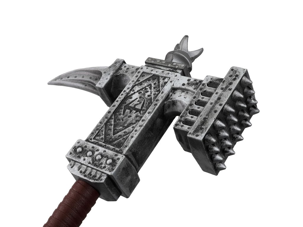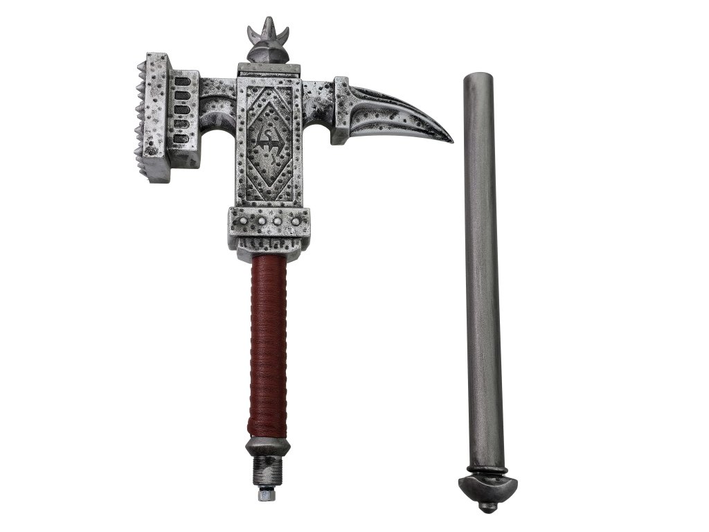 Kladivo je vyrobené z odolného kovu s detailmi, ktoré sa inšpirujú jeho hernú predlohu. Horná časť rukoväte je omotaná eko-kožou pre lepší úchop a pohodlné držanie. S celkovou dĺžkou 86 cm a hmotnosťou 2,5 kg pôsobí autenticky a dodáva mu to na vierohodnosti. Hlavica kladiva meria 32 cm a svojim dizajnom evokuje drvivú silu, pre ktorú je táto zbraň preslávená.