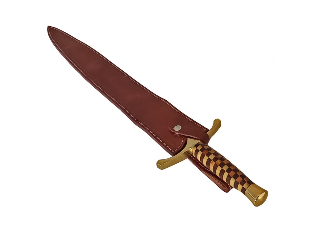 Materiál: | Damašková oceľ, drevo, mosadz, hovädzia koža (púzdro) |