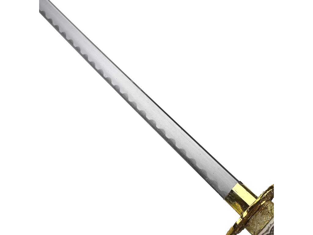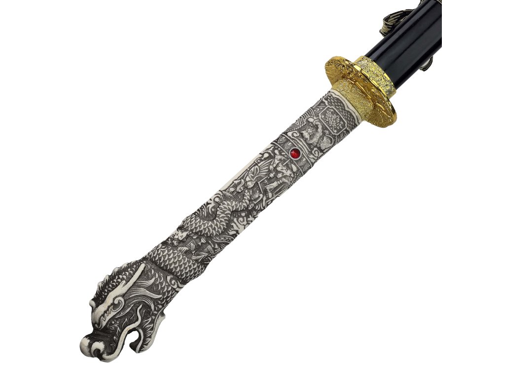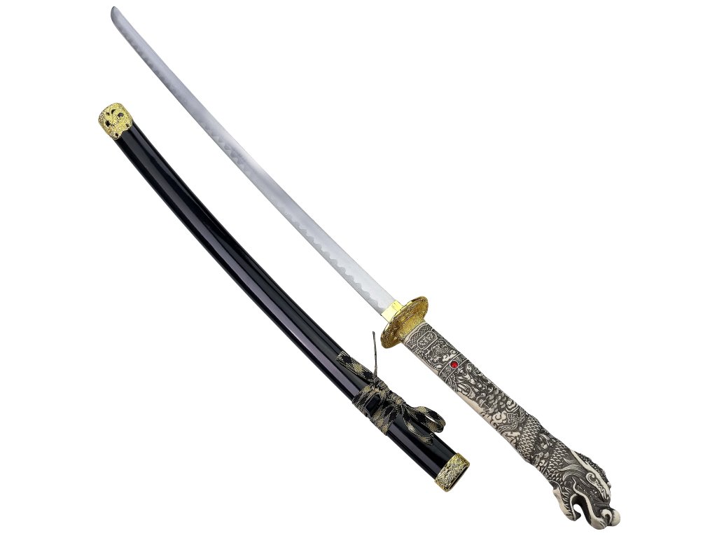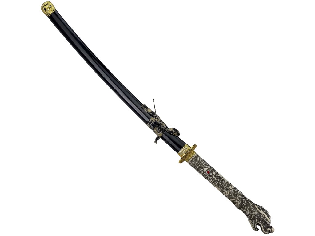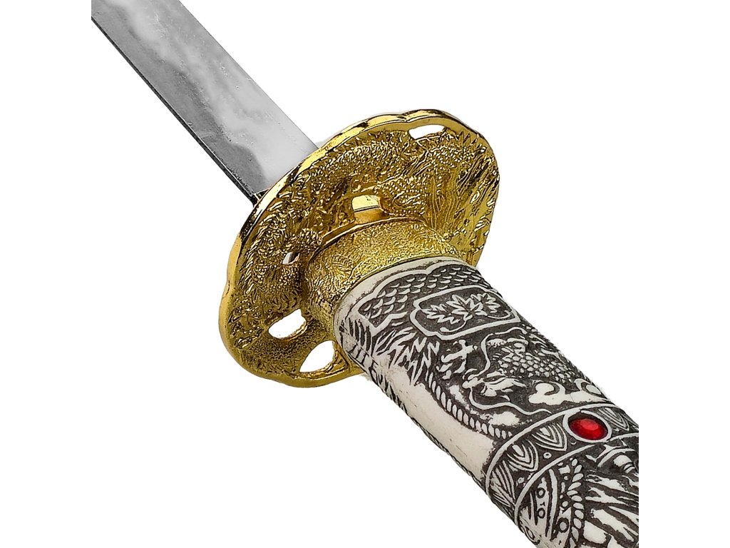 Legendárna oceľová katana "HIGHLANDER" Správni fanúšikovia túto čepeľ určite spoznajú. Katana, ktorá sa preslávila svojou rolou v známom filme Highlander. Hlavný hrdina je tu z vzácnej skupiny ľudí, ktorí sú zvaní nesmrteľní. Títo ľudia sú obdarení nekončiacim životom, ale je to tak dané, že aj medzi touto skupinou ľudí, sa nájdu aj záporáci. V priebehu dejín sa Conorovi do rúk dostala katana, ktorej sa nerovnala žiadna zbraň na svete. Náš tím Vám s radosťou predstaveje repliku katany „HIGHLANDER“. Replik "HIGHLANDER" je dokonalou prepracovanou kópiou originálnej katany z rovnomenného filmu o veľkosti 1:1. Čepeľ katany "HIGHLANDER" je vyrobená z nerezovej ocele, takže údržba katany je doslova minimálna. Kvalitné spracovanie kladie veľký dôraz na detaily, takže na tejto katane dokonca linku hamon (nie je kalené na hamon). pre väčšiu bezpečnosť tupá. Rukoväť "HIGHLANDER" je skutočným umením. Celé telo je vyrobené z odolného plastu, ale navodzuje veľmi verný vzhľad slonoviny. Celá rukoväť je potom zdobená veľmi detailnými reliéfmi z histórie a koniec rukoväte má tvar dračej hlavy. V strede rukoväte je usadený plastový drahokam, ktorý budí dojem rubínu. Tsuba a detaily na pošve sú potom z pozlátenej ocele.Dodatočné parametre