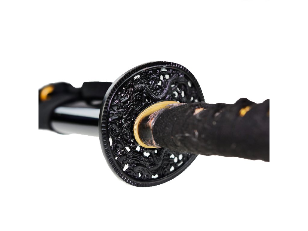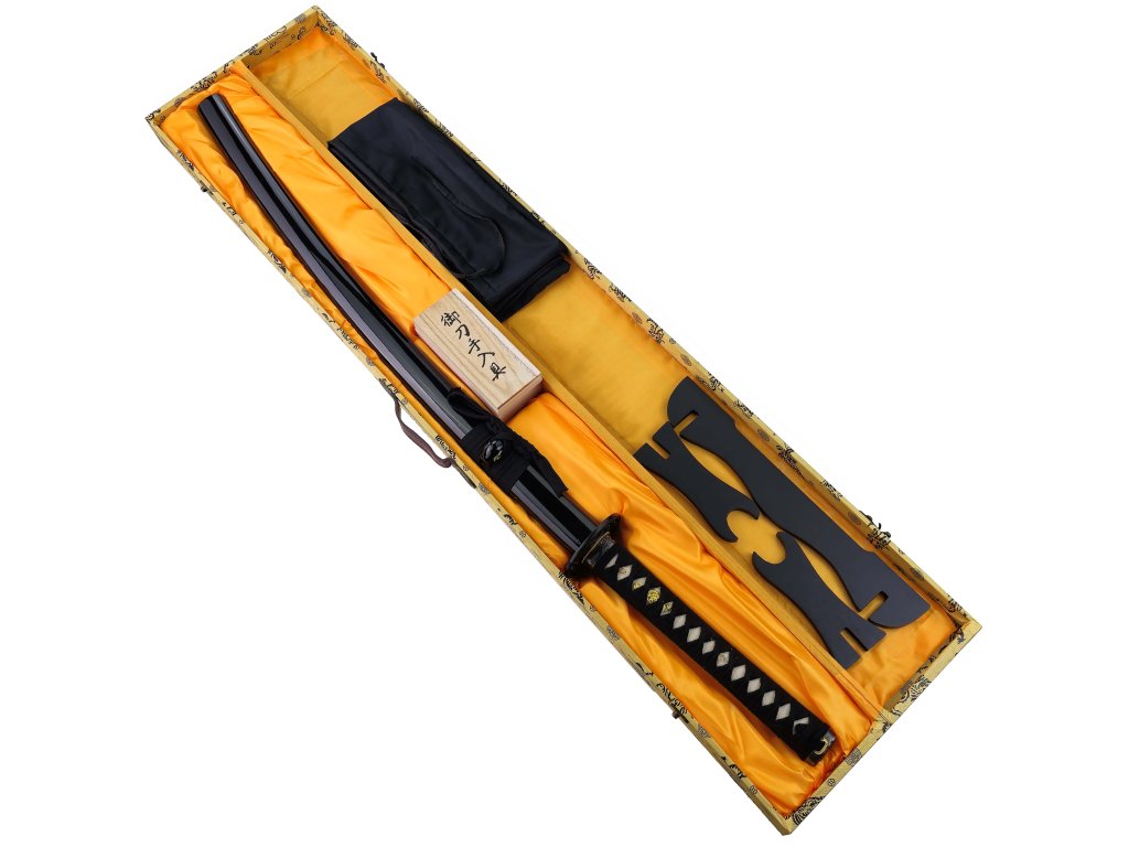 LUXUSNÁ KATANA "HONŠÚ DRAGON" S BOHATÝM PRÍSLUŠENSTVOM Predstavujeme našu novinku medzi samurajskými mečmi. Luxusne spracovanú katanu, na ktorej sme dlhú dobu pracovali. Táto katana nesie iba tie najlepšie materiály, ktoré sa používajú v Japonsku. Drží v sebe ducha pravého samuraja, ktorým môžete byť aj Vy! Čepeľ katany je od výroby vysoko ostrá a je vhodná na tréning seku - napríklad tameshigiri. Čepeľ je dlhá 70 cm a je vyrobená z japonskej ocele T10, ktorá vyniká svojou extrémnou odolnosťou a tvrdosťou 60 HRC. Hrúbka čepele je neuveriteľných 7,5 mm! Po celej dĺžke ostria môžete pozorovať líniu kalenia Hamon. Ten vzniká v peci, kde je zadná časť čepele obalená ílom a potom je zahriata pri veľmi vysokej teplote. Celá čepeľ potom perfektne padne do Sayi (pošvy). Tá je vyrobená z dreva, ktoré chráni čepeľ a umožňuje samurajovi katanu bezpečne nosiť. Tomu napomáha Kurigata, teda očko, vďaka ktorému sa dá pošva prirobiť na samurajský opasok. Rukoväť je vyrobená v tradičnom japonskom štýle. Základ tvorí Same-nuri - v tomto prípade pravá rajská koža. Tá obopína rukoväť po celej jej dĺžke. Cez raju kožu je následne natiahnutá bavlna, ktorá sa omotáva tradičným štýlom, ktorý dáva katane ten "správny" vzhľad. Pod omotávkou si všimnete aj Menuki (ozdoba) v podobe draka. Rovnaký motív nesie aj Tsuba (záštita) medzi rukoväťou a čepeľou. Tá je samozrejme vyrobená z ocele. Súčasťou balenia je aj drevený boxík, ktorý obsahuje príslušenstvo na údržbu a čistenie katany. V boxe sa nachádza: - mosadzné kladivko (Mekugi-nuki) s 2 drevenými štipcami na vytláčanie pôvodných kolíkov z rukoväte - brúsna a leštiaca palička (Utchiko) - 2x čistiaci olej - jemná handrička na utieranie čepeleCelá čepeľ je pevne ukotvená v rukoväti pomocou 2 drevených kolíčkov, ako tomu bývalo u historických predlôh. Kolíčky je možné pomocou príslušenstva vybrať, čepeľ vysunúť a vymeniť napr. záštitu či vykonať údržbu. Rovnakým spôsobom menili záštity samuraji a to v závislosti na ročnom období, sociálnych udalostiach ai. Podobne ako my meníme naše šperky apod. ;-) Pre ešte krajší vzhľad je súčasťou príslušenstva čistiaca sada, obsahujúca leštiacu paličku Utchiko. Utchiko je palička vytvorená z jemného rozomletého kameňa zabaleného do prúžku hodvábu. Paličkou sa nanáša na čistú oleja zbavenú čepeľ poprašok kameňa, ktorý sa potom stiera mäkkou čistou handričkou smerom ku hrotu katany. Takto ošetrenú katanu si môžete vystaviť kdekoľvek sa Vám zapáči, vďaka stojanu, ktorý je súčasťou balenia. Ten sa skladá z 3 častí a nie je potreba jediná skrutka! Celá katana je dodávaná v hodvábnom puzdre. Tá je uložená spoločne s príslušenstvom v prekrásne zdobenom darčekovom boxe s koženou rukoväťou a mosadznými zámkami. Ideálny darček pre pravého samuraja! Súčasťou balenia je aj certifikát katany.Dodatočné parametre