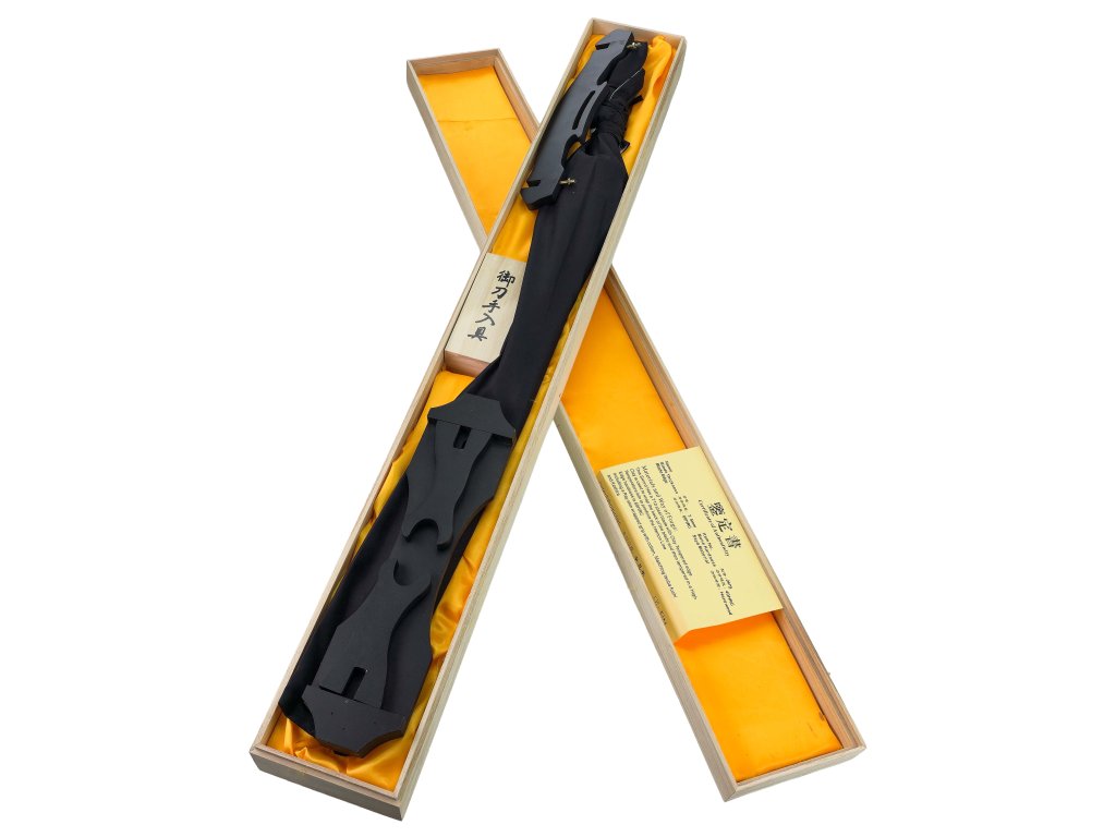 Súčasťou balenia je drevená darčeková krabica, ktorá obsahuje háv na meč, sadu na údržbu, drevený stojan a certifikát. Katana „AKA NO SEIREI“ je vysoko kvalitný zberateľský kúsok určený pre znalcov, zberateľov i milovníkov japonskej kultúry, ktorí hľadajú nádhernú, luxusnú a autentickú katanu v tradičnom štýle.
