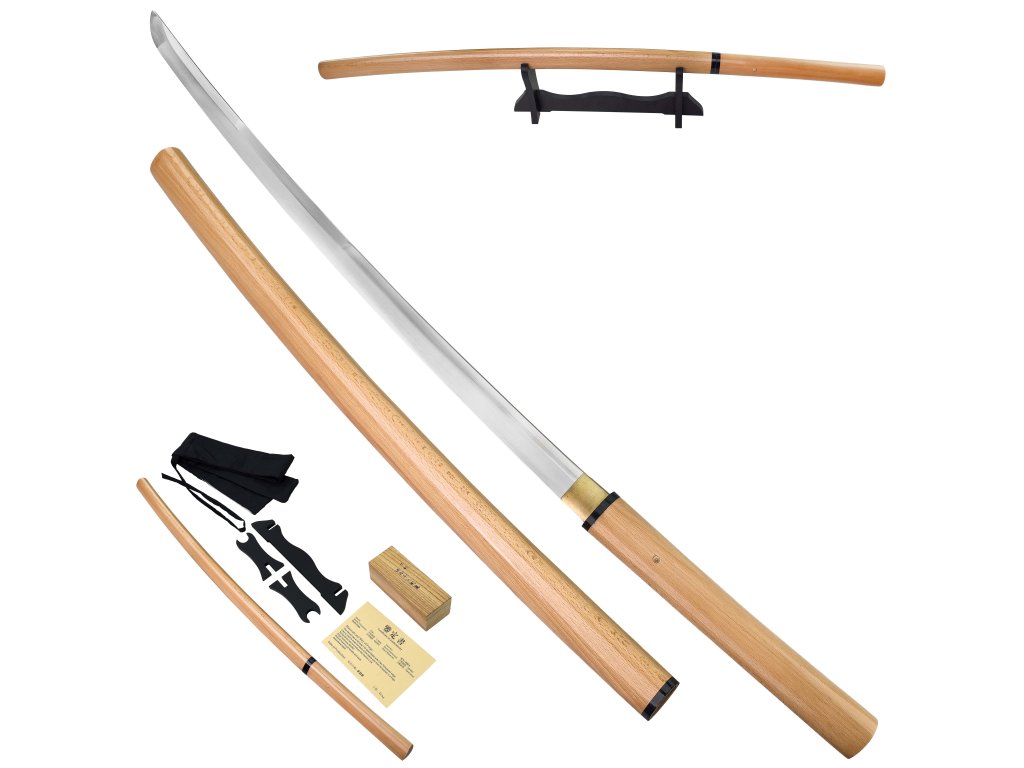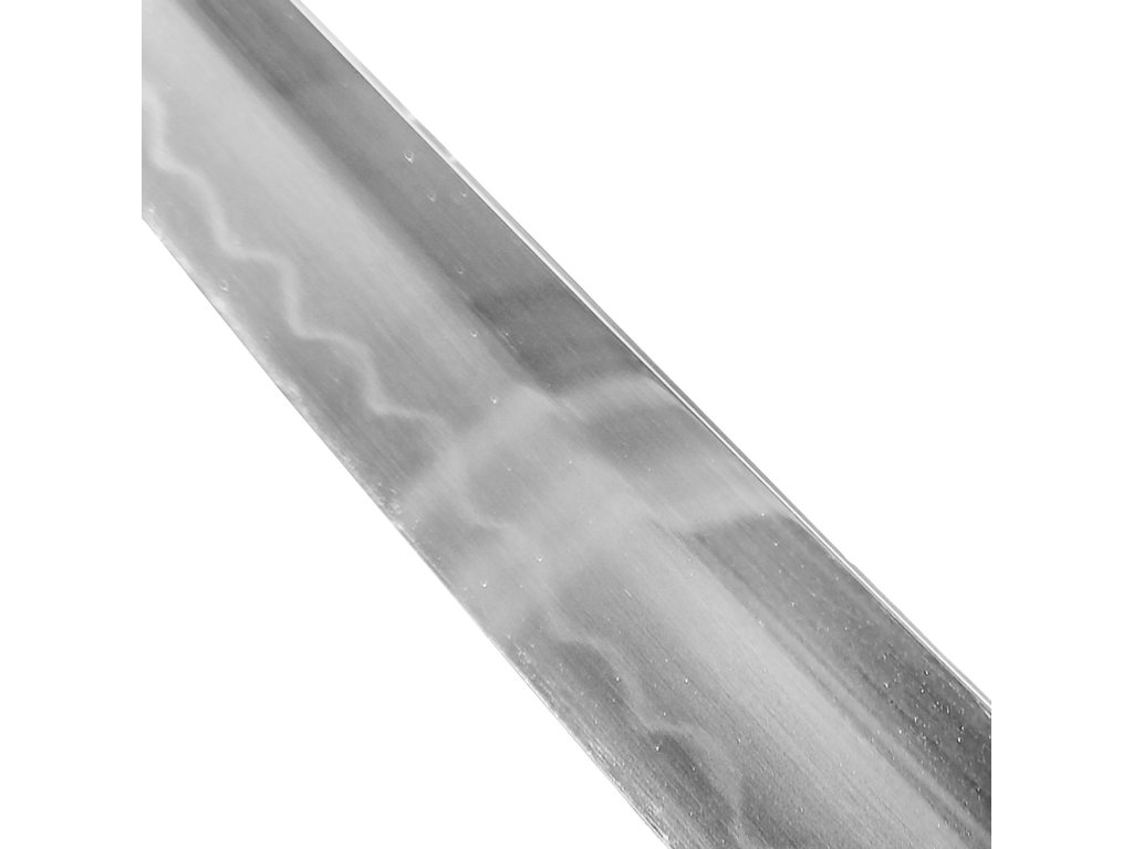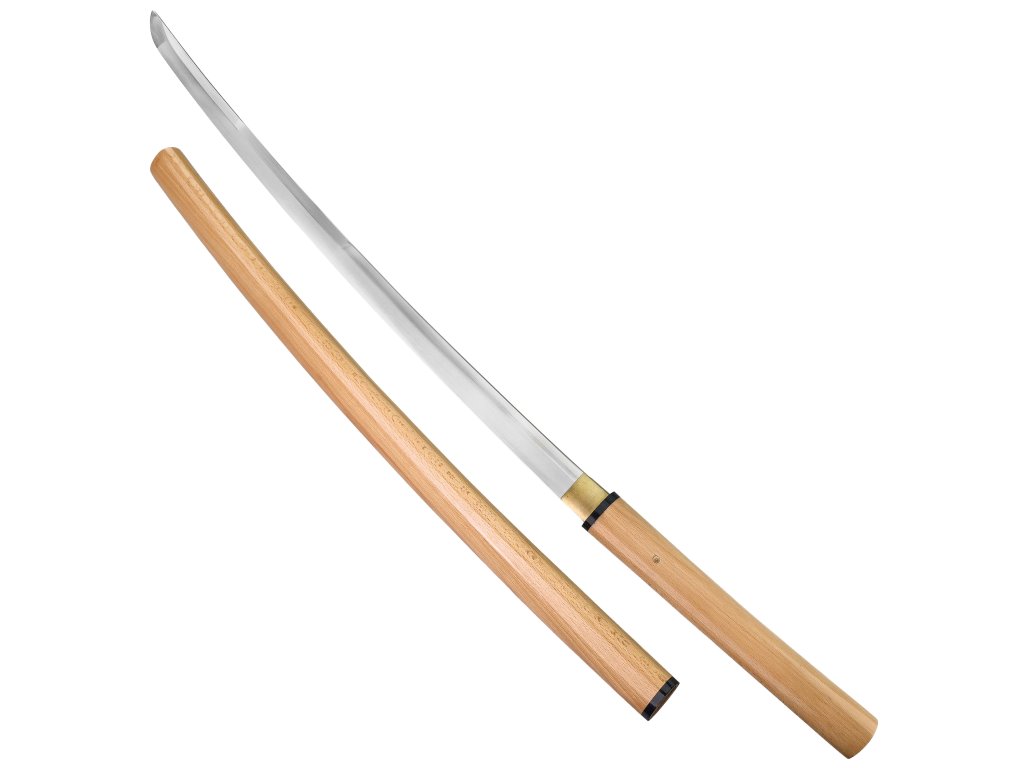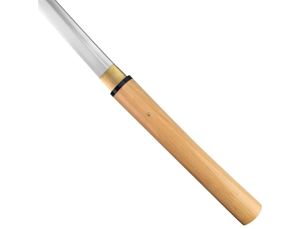 Čepeľ z ocele T10 a kalená ílom na dosiahnutie tvrdosti až 60 HRC, vďaka čomu sa na ostrie vytvára nádherný veľmi jemný reálny hamon – jemná línia prechodu tvrdosti, ktorá je dôkazom majstrovskej tepelnej úpravy. Čepeľ je extrémne ostrá a zrkadlovo vyleštená, zasadená do minimalistickej drevenej rukoväte i pošvy z prírodného tvrdého dreva, ktoré dodávajú zbrani elegantný a prirodzený vzhľad.