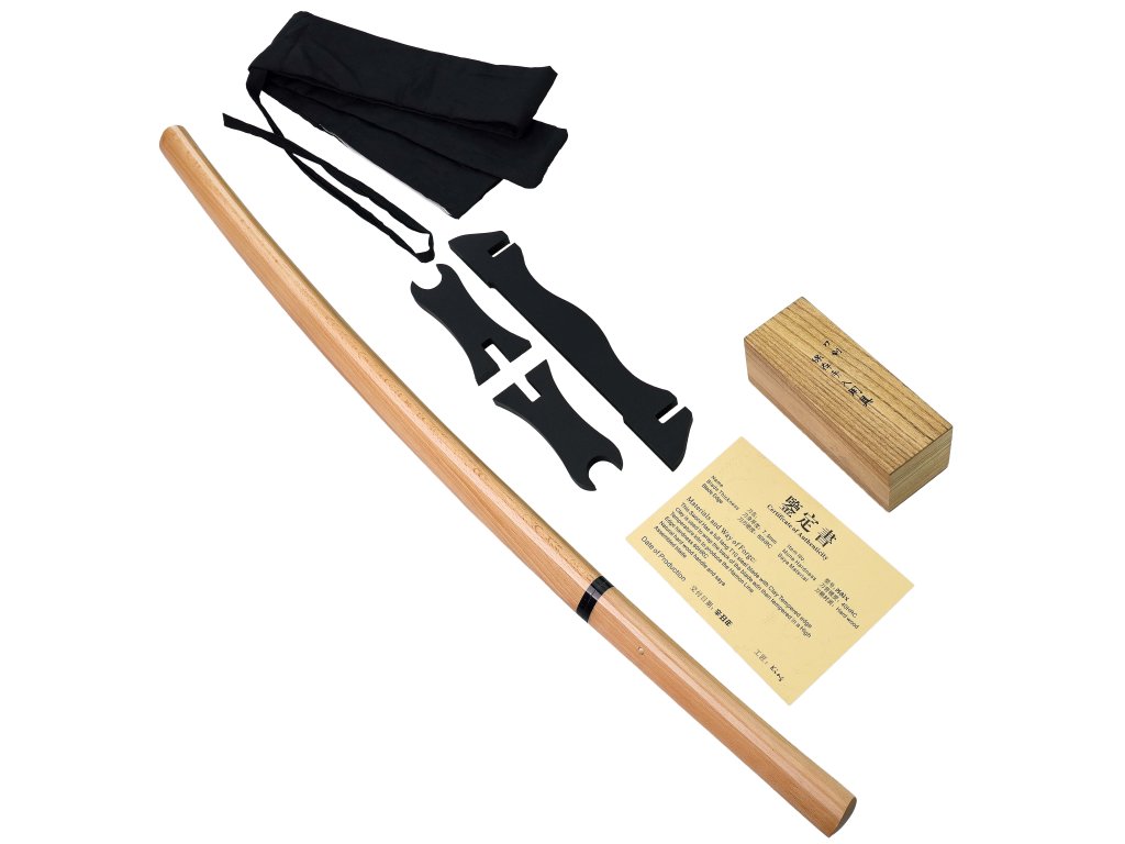 Súčasťou je bohatá výbava, ktorá podčiarkuje prémiový charakter tejto katany - drevená darčeková krabica, háv na meč, sada na údržbu, stojan a certifikát výroby. Každý kus je starostlivo kontrolovaný, aby spĺňal najvyššie štandardy kvality. „KI NO KAZE“ je ideálnou voľbou pre každého, kto hľadá autentický kúsok japonského remesla v luxusnom prevedení.
