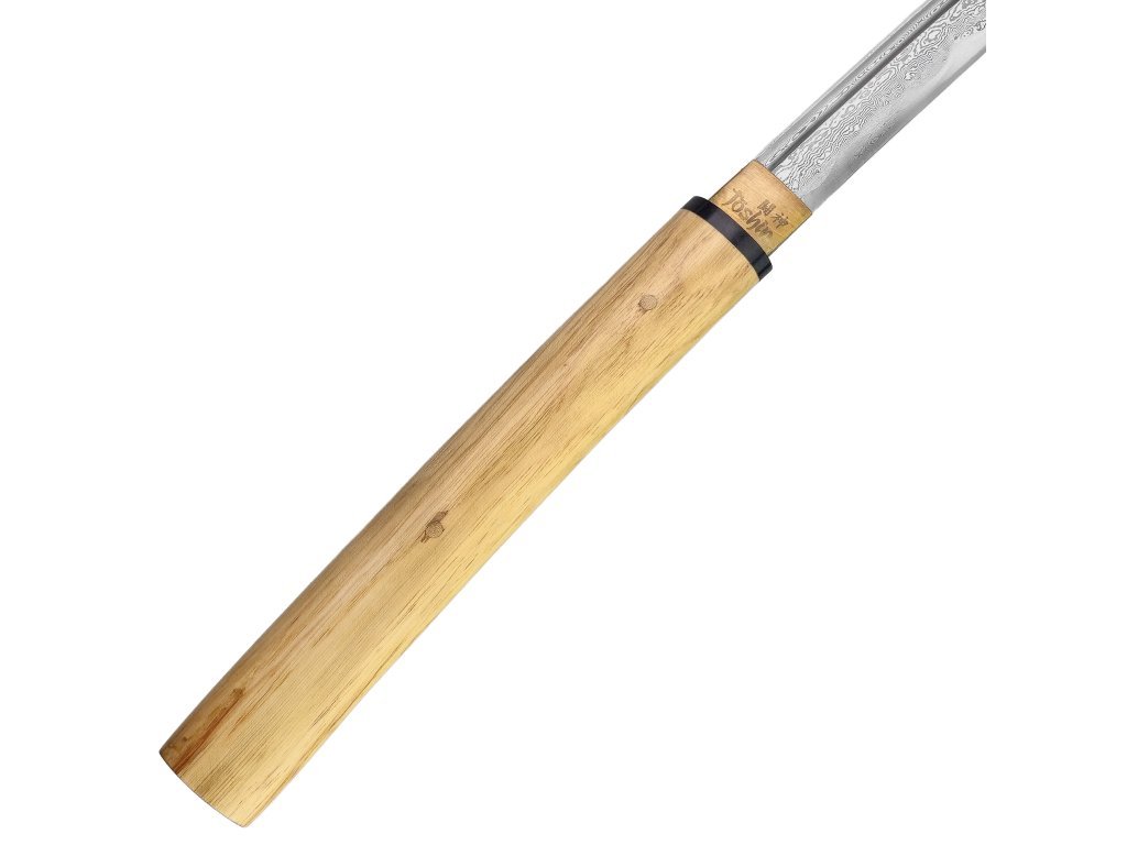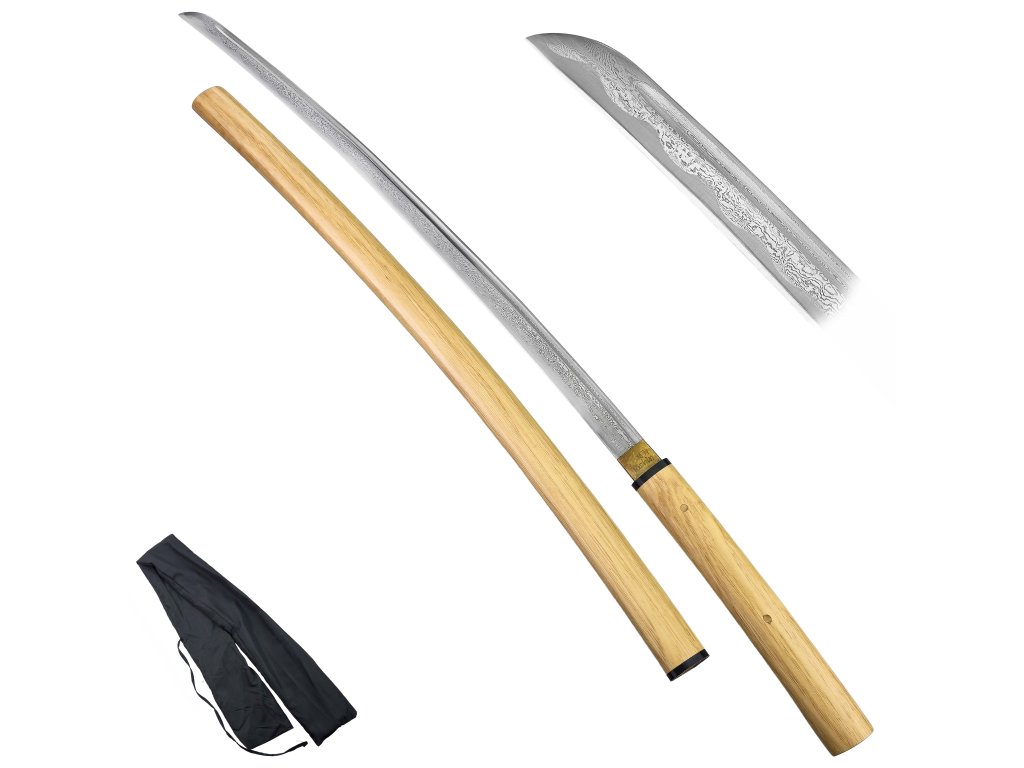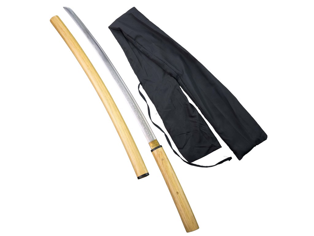 Unikátny samurajský meč "OTHER SIDE" Na prvý pohľad obyčajný meč, ktorý však skrýva zvláštne prekvapenie. Neobvyklý samurajský meč "OTHER SIDE" je kúskom oplývajúcim jednoduchým dizajnom, ktorý Vás presvedčí, že aj v jednoduchosti je skrytá krása. Jednoduchá rukoväť zo svetlého dreva je na chlp rovnaká, ako pošva. Odlišuje sa len tmavší spoj, inak sa môže zdať, že sa jedná o drevený meč. Po vytiahnutí meča z pošvy, Vás ihneď prekvapí čepeľ otočená na druhú stranu. vďaka svojmu neobvyklému zahnutiu, má meč viac možností sekania a rezania. Damašková čepeľ s dĺžkou 70 cm, je zapustená do rukoväte a pevne zakolíčkována. Na meči nenájdete oplet ani záštitu. Čepeľ je z výroby ostrená. Súčasťou balenia je čierne rúcho, v ktorom môžete meč pohodlne prenášať. Katana je vhodná pre tréning sekov do vzduchu, tak na bambusové rohože. Okrem toho ju môžete využiť aj ako doplnok k divadelnému kostýmu, alebo coslay. Rozhodne neodporúčame používať ku kontaktnému šermu. Katana nie je pre túto činnosť určená !!!