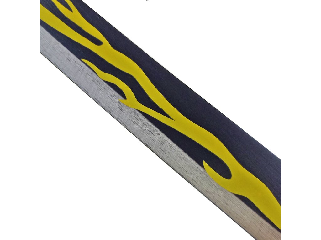 Ďalší kúsok ktorý sa objavil v anime seriáli Demon Slayer. Teraz sa jedná o meč zbabelého šermiara Zenitsu Agatsumi, ktorý ovláda element blesku. Aj keď táto replika túto schopnosť nemá, jedná sa však o detailne prepracovaný kúsok, ktorý 100% očarí každého fanúšika Anime Demon Slayer. Prepracovaná katana je v pomere 1: 1 s originálom. Čepeľ meča s dĺžkou 66,5 centimetrov je vyrobená z kusu karbónovej ocele. Aj keď je ostrie čepele ľahko ostrené už z výroby, nejedná sa o katanu určenú na sekanie či ku kontaktnému šermu. Katana je však dostatočne pevná, aby ustála nácvik sekov do vzduchu. Jedná sa však čisto o výstavný kúsok. Zdobená Tsubo v bielo žltom prevedení má veľmi očarujúci design. Rukoväť s oceľovým jadrom je vyrobená z dreva, obalená imitáciou kože z raje v žltej farbe. Rukoväť je omotaná bielou omotávkou z jemného materiálu, ktorý pohodlne sedí v ruke. Súčasťou meča je pevná drevená pošva v bielej farbe. Meč je skvelým doplnkom do zbierky fanúšika Demon Slayer, ale aj ostatných Anime. Padne do interiéru Vášej izbičky, obývačky či spálne. Ninchirin Katana "ZENITSU AGATSUMA" je skvelým doplnkom ku cosplayu! :)