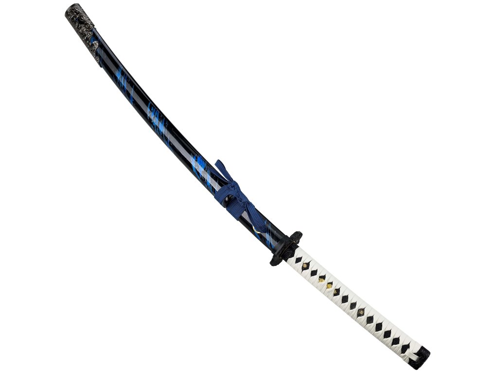 Tato nádherná katana „JIN’S HONOR“ je poctou statečnému samurajovi Jinu Sakaiovi z herní legendy Ghost of Tsushima. Jde o detailní ručně vyráběnou repliku jeho meče, který symbolizuje čest, odvahu a vnitřní boj mezi tradicí a přizpůsobením se novým cestám válečníka. Na první pohled zaujme elegantní kombinace bílého opletu tsuky (rukojeti) a tmavé pochvy (saya) s modrými ornamenty.