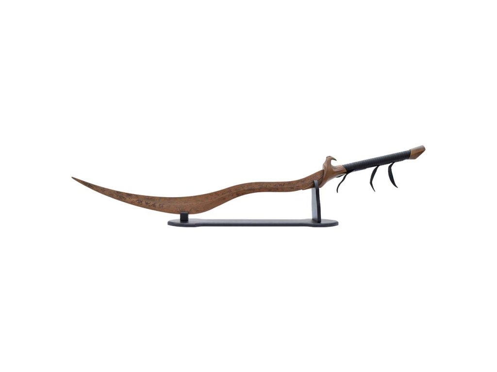 Dodáváno s jednoduchým dřevěným stojánkem, který umožňuje vystavit meč jako dekoraci na stole či poličce. Čepel je neostřená, což zajišťuje bezpečnost při manipulaci, ale zároveň zachovává autentický vzhled zbraně, jež proslula svou schopností rozsévat chaos v rukou zkušených Tarnished.