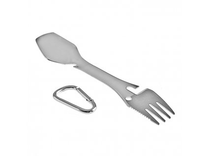 Multifunkčný príručný nôž s hmotnosťou 40 g je super pomocníkom, ktorého majte vždy po ruke. Je vyrobený z jedného kusu nerezovej ocele 3cr13. Disponuje 5 cm dlhou čepeľou, 4 cm dlhou pílkou, otváračom na fľaše, 6 kľúčmi na matky a pútkom z paracordového lana. Otvory na noži sa dajú taktiež použiť na prevlečenie paracordového lana a vytvorenie núdzového oštepu napr. na lov rýb. Celková dĺžka noža je 16,5 cm.