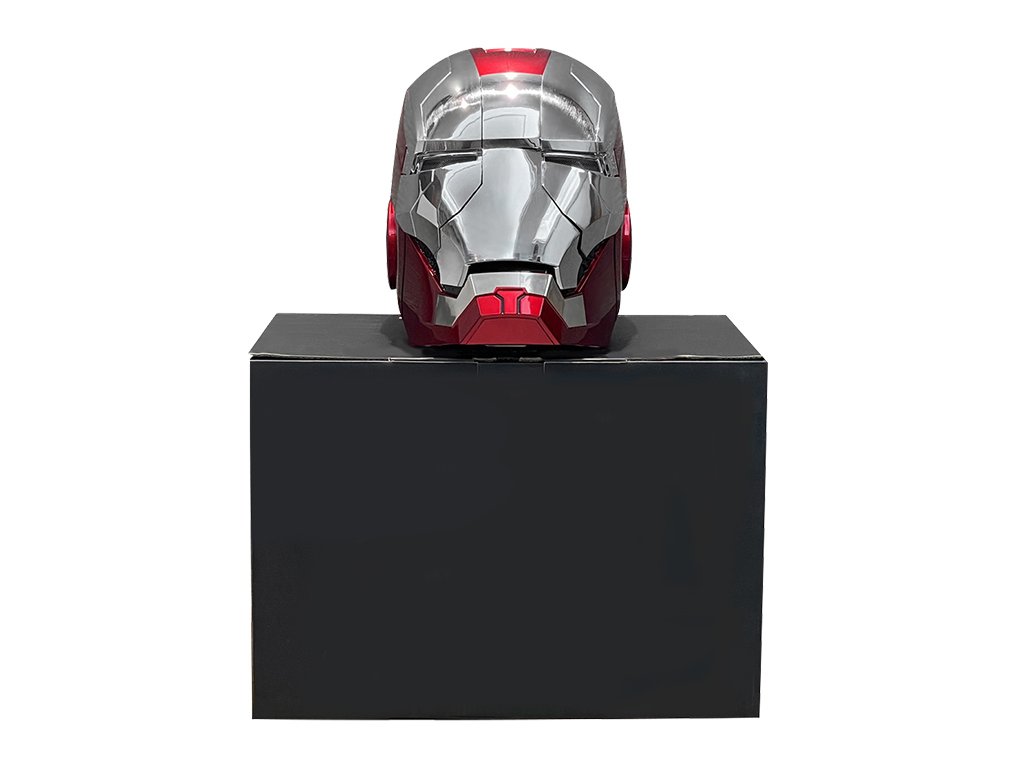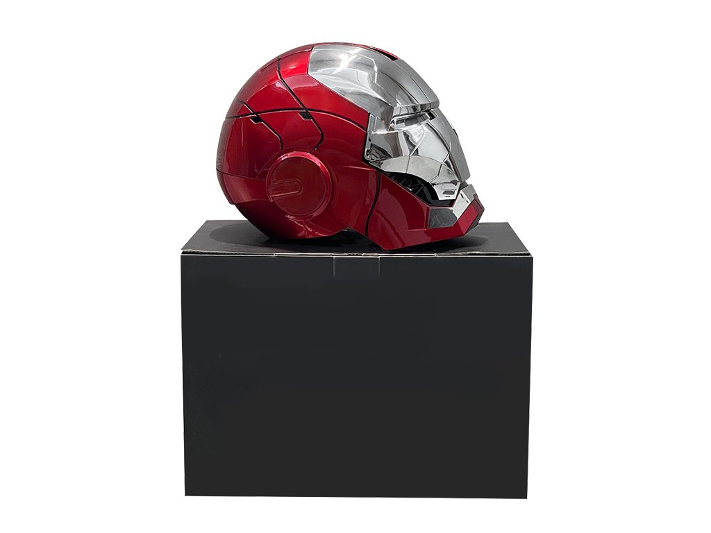 Plne automatická prilba "IRON MAN MK5" Marvel / Avengers Predstavejeme Vám našu horúcu novinku, ktorá nemá na tunajšom trhu obdobu. Luxusne zostrojená, plne automatická helma "IRON MAN MK5", ktorá Vám vyrazí dych svojimi funkciami, ale aj presným prevedením. Plne automatické otváranie / zatváranie čelnej časti Je možné ovládať diaľkovým ovládačom, dotykovými panelmi na ušiach, alebo Vaším hlasom Svietiace oči - biela či červená farba Nositeľná a veľkostne prispôsobiteľná - je možné zložiť zadnú časť a tým zväčšiť veľkosť Luxusné prevedenie otváracieho i zatváracieho procesu Všetky pohyby helmy sú sprevádzané zvukovými efektmi Hlasové ovládanie: Helma sa dá ovládať pomocou hlasových príkazov. Tu je zoznam príkazov a funkcií helmy. Príkazy je nutné vysloviť v angličtine. Hlasový príkaz Funkcia Hello Jarvis Hello Štart systém Hello, I am Jarvis Open the mask Helma sa rozloží a otvorí Close the mask Helma sa zloží a zavrie Štart combat mode Oči začnú svietiť na červeno Close combat mode Oči začnú svietiť bielo Shutdown systém Enjoy yourself, Sir Dotykové ovládanie: Helma disponuje dotykovými panelmi, ktoré sú umiestnené na ľavom a pravom uchu helmy. Ľavý panel: Po dotyku sa helma postupne rozloží a otvorí. Ďalší dotyk ju zloží späť. Pravý panel: Po dotyku sa otvorí celý predný štít. Ďalší dotyk zavrie celý štít späť. Diaľkový ovládač: Súčasťou balenia je aj diaľkový ovládač. Vďaka nemu môžete helmu ovládať na diaľku napr. na polici. Tlačidlo Funkcia A Otvorenie / zatvorenie celej prednej časti B Rozloženie/zloženie prednej časti masky C Prepínanie farieb očí D Podsvietenie očí zap./vyp. E Zvuk helmy zap./vyp. Helma je napájaná 4x AA batériami. Ovládač je napájaný 2x AAA batériami. Batérie nie sú súčasťou balenia. Ukážkové video + prehľad funkcií: