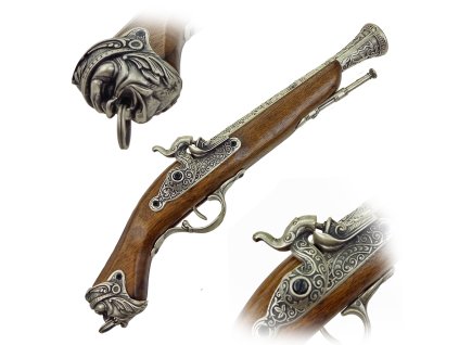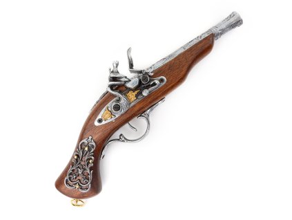 Replika Perkusná pištoľ "DERRINGER PHILADELPHIA" na kapslíky Replika historickej zbrane model DERRINGER PHILADELPHIA USA 1862 od výrobcu DENIX. Táto zbraň je skvelou voľbou pre milovníkov histórie, zberateľov alebo tých, ktorí si chcú doplniť svoju zbierku autentických replík. Telo tejto repliky je vyrobené z tvrdeného plastu, ktorý mu dodáva odolnosť a príjemnú váhu. Mechanizmus zbrane je vyrobený z kovu, čo pridáva na autentickosti. S touto replikou môžete zažiť pocit držania dobovej zbrane vo svojich rukách. pištoľ má tiež praktickú možnosť strieľať kapslíky. To umožňuje realistický simulovaný výstrel bez nutnosti používania ostrých nábojov. Môžete si tak užiť atmosféru minulosti bez akejkoľvek reálnej hrozby. Replika perkusnej pištole je precízne vyrobená s dôrazom na detaily. Je to skvelý doplnok na kostýmovanie alebo filmové natáčanie, ale tiež sa hodí ako dekorácia do Vášho domova či pracovne. DERRINGER PHILADELPHIA USA 1862 je skvelým darčekom pre zberateľov zbraní alebo historických nadšencov.Dodatočné parametre