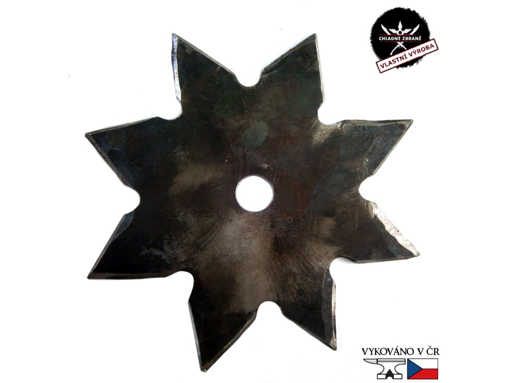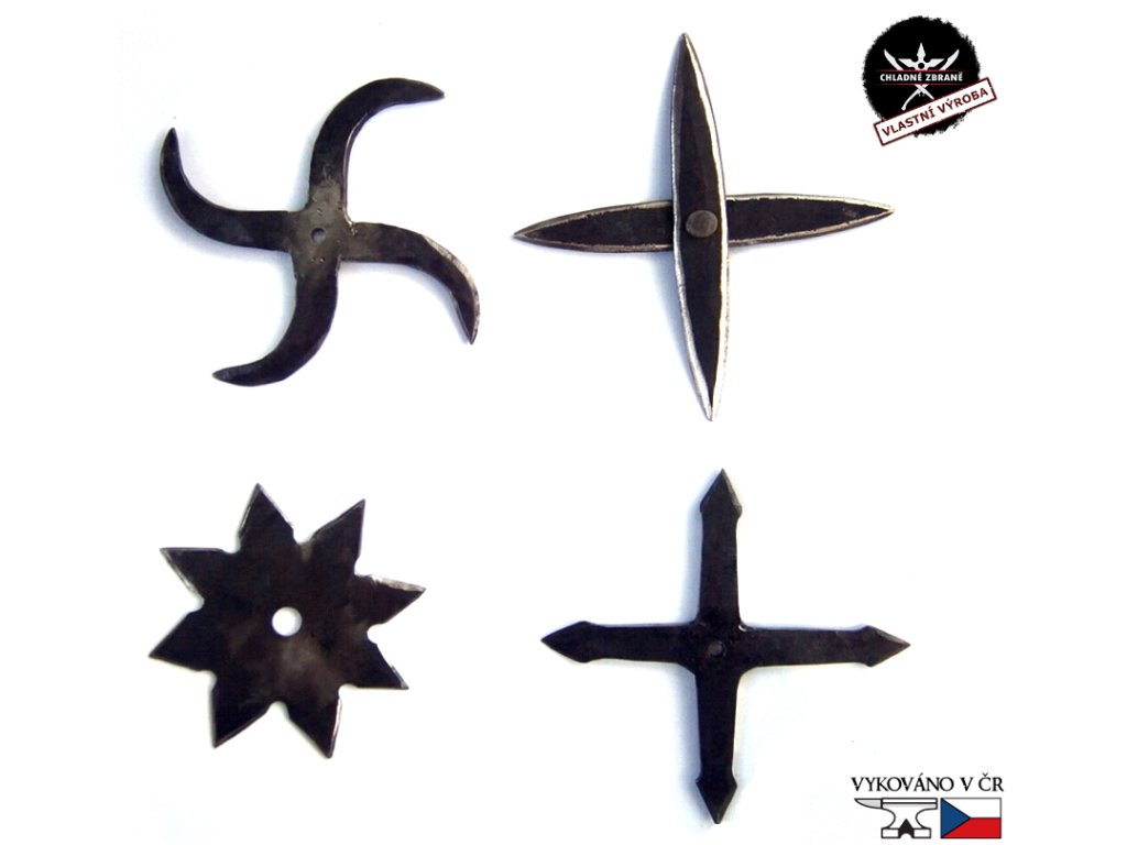 Úplne jedinečná a ojedinelá novinka, ktorú sme si dovolili vložiť do predaja. Jedná sa o úplne historicky verné kópie vrhacích hviezdic, ktoré sú vyrobené ručne na zákazku podľa historických predlôh a rozmerov. V rukách sa Vám tak ocitne jedinečný umelecký kúsok, v ktorom je uložený pot a práca umeleckého kováča aj duch starovekého Japonska. Vďaka kovanému materiálu sú hviezdice ťažšie a tiež razantnejší ako sériovo vyrábané "ARROW" či "NATTY". Poteší každého milovníka starého Japonska, kultúry nindžov, umeleckej práce aj vrhača nožov apod. Môžete ich využívať plne k svojmu účelu, ale tiež aj ako dekoráciu! Povestná vrhacia zbraň nindžov ázijského pôvodu. Bojovníci nindža ju nazývali "shuriken". Okrúhly otvor uprostred hviezdic slúži na navlečenie na povraz. Nindžovia ich nosili sebou takto navlečených až desiatky (historicky doložené).