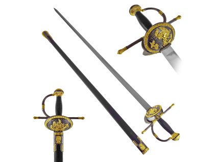 Krásna a luxusne spracovaná replika americkej jazdeckej šable! Akonáhle ju vezmete do ruky, bude Vám ihneď jasné, že hoci jej cena nie je vysoká, tak kvalitou dosahuje do oveľa vyšších rozmerov! Ťažká váha šable, luxusná pošva, ozdobné strapce - všetky detaily sú masívne a z kovu! Kovová zdobená záštita, polstrovaná zahnutá rukoväť, pevné kovové nakonci pošvy a pod. Váha tejto jazdeckej šable je úplne reálna voči originálu. Aby bola krása šable umocnená, zasielame k nej aj čierny drevený stojan - bude tak ozdobou a dotykom histórie prakticky kdekoľvek! Čepeľ pevne drží v záštitě, šabľa je veľmi pevne skonštruovaná. Nie je však zárukou určená pre kontaktný šerm či ozajstné sekanie. Aj keď veríme, že by vďaka svojej hmotnosti a váhe všeličo presekol :-) Táto americká jazdecká šabľa "CAVALRY" bude Vašou ozdobou na Vašom pracovnom stole, v obývačke, na fantasy táboroch, plesoch, ku kostýmu, na zábavách, LARP, divadelných scénach a pod.!