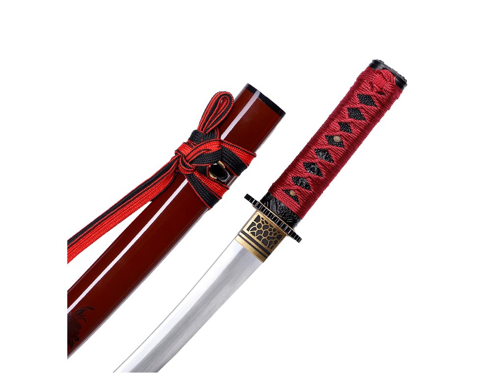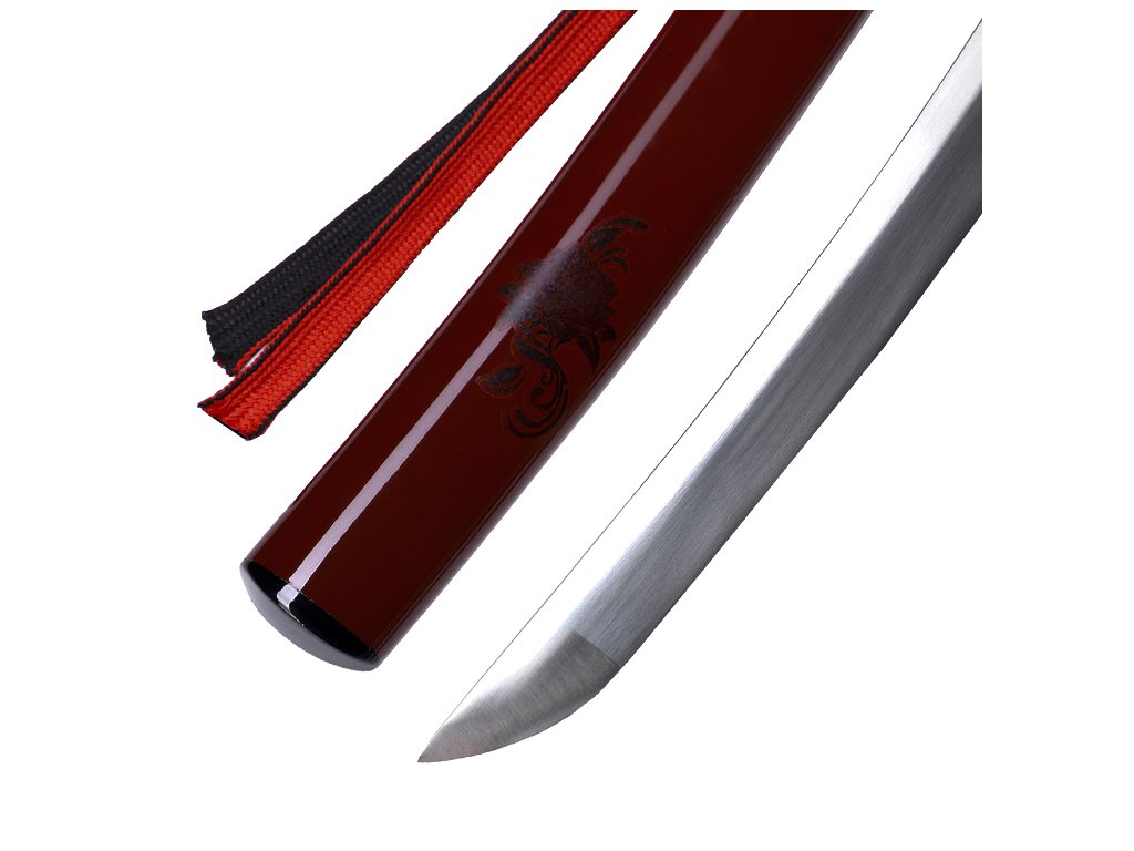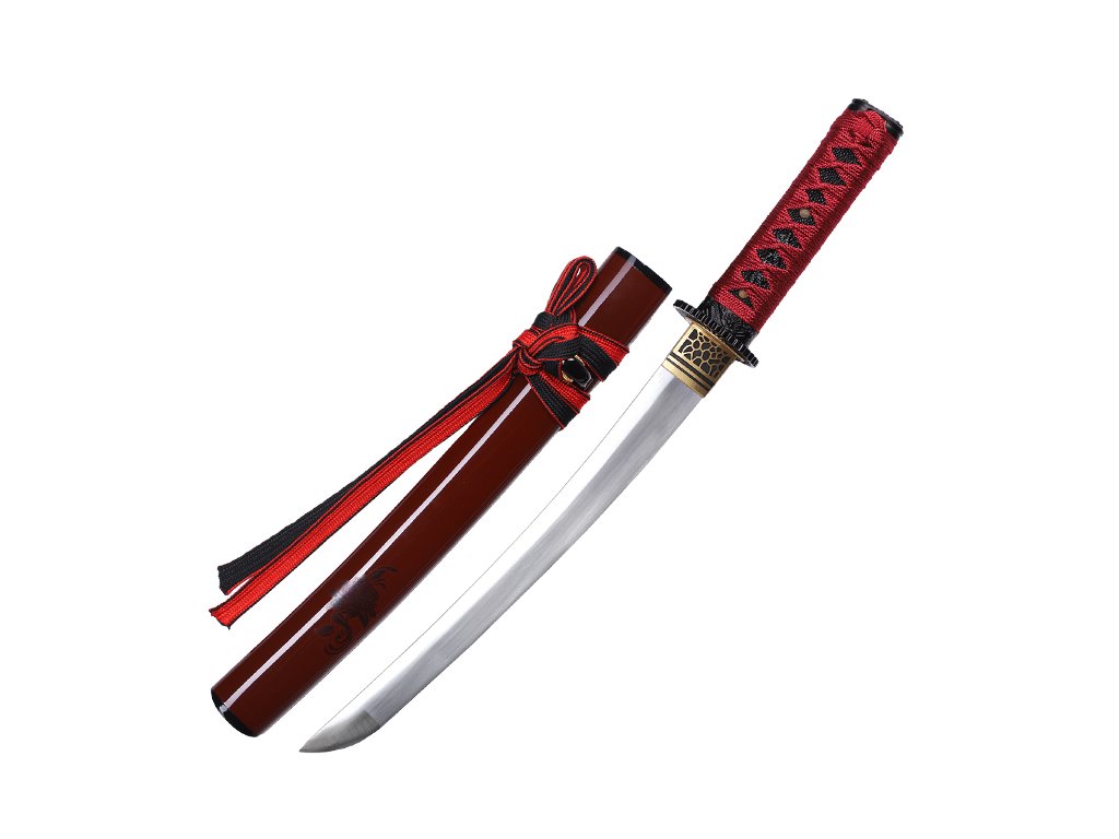 Súčasťou tohto produktu je tiež drevená pošva v temne červenej farbe, ktorá perfektne ladí s červenou rukoväťou. Pošva nielen chráni čepeľ pred poškodením pri preprave. Tanto "AKAHANA NO TANTO" je skvelou voľbou pre zberateľov mečov alebo milovníkov japonských tradícií.