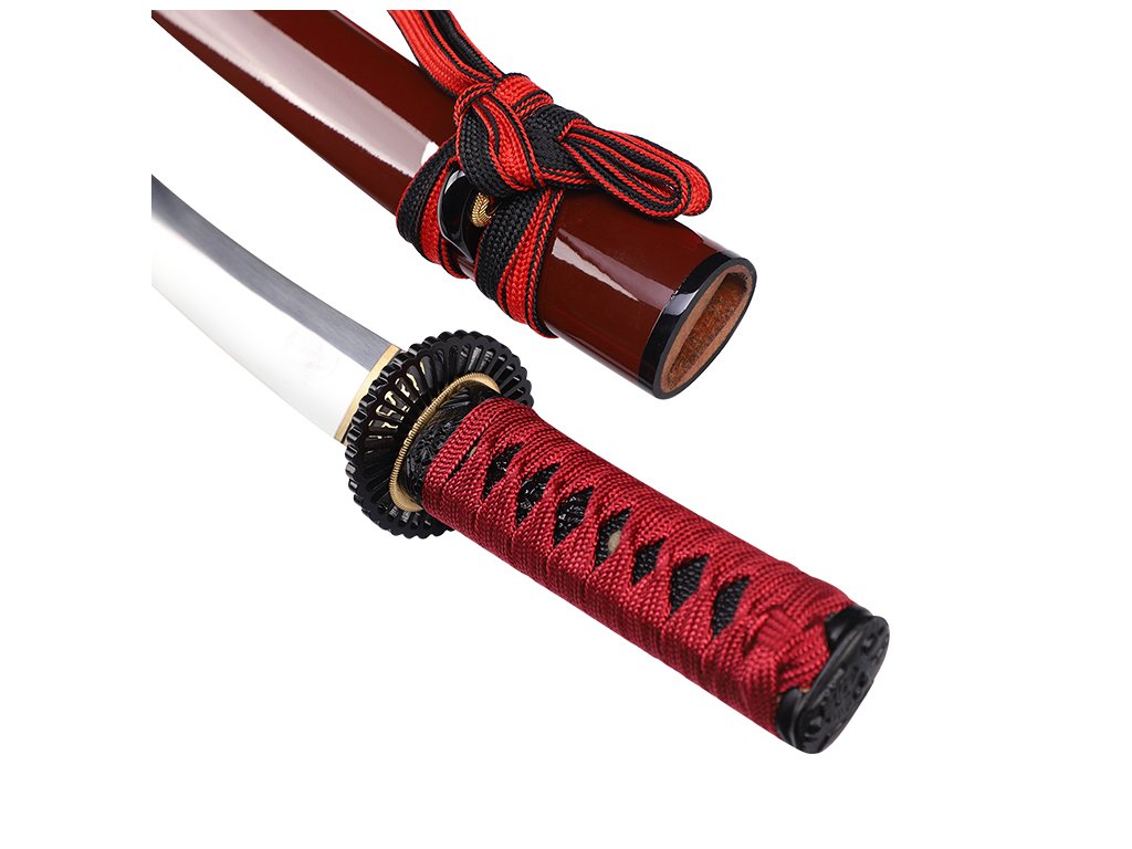Toto elegantné a kvalitne vyrobené tan z karbónovej ocele 1065. Na rukoväti tohto tanta nájdete imitáciu rajskej kože obmotanú bavlneným opletom v červenej farbe. Čepeľ tohto tanta je istená dvoma štipcami, ako býva u tradičných katán a nožov tanto.