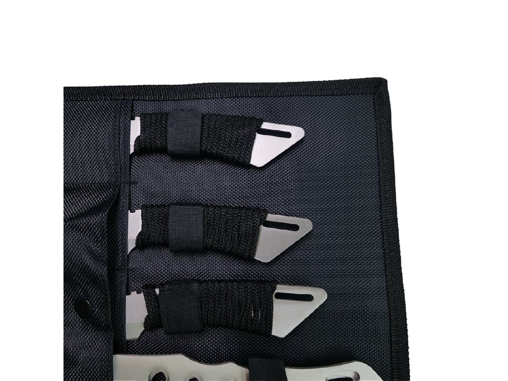 Sekery aj nože sú vyrobené z kvalitnej nerezovej ocele 3cr13, ktorá zaisťuje ich odolnosť. Vďaka svojmu dizajnu majú sekery výbornú aerodynamiku, čo zaručuje presný let a trefu do cieľa. S týmto setom budete mať istotu, že vaše hody budú zakaždým úspešné. Okrem toho každý nôž má na rukoväti čiernu nylonovú tkaninu, ktorá nielen dodáva nožom moderný vzhľad, ale taktiež poskytuje pridaný komfort pri držaní.