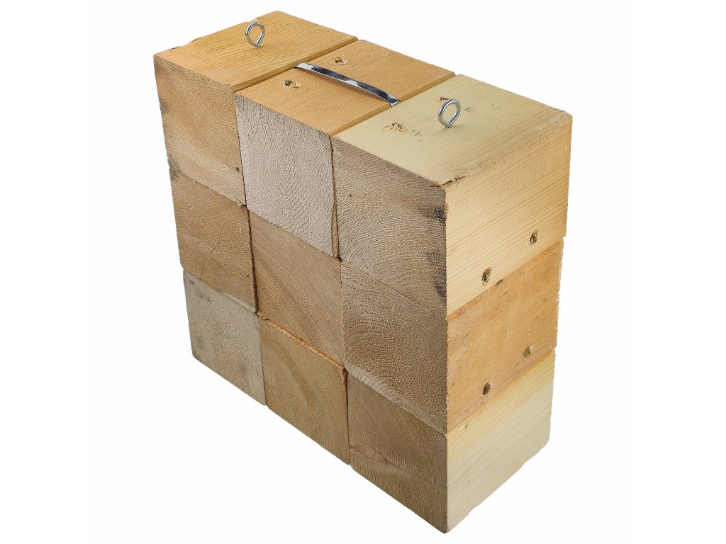 Pevný profesionálny drevený terč WOODEN WALL je vyrobený z kvalitných hrubých drevených kociek, ktoré sú k sebe pevne stiahnuté oceľovou páskou a zaistené skrutkami. Táto konštrukcia zaručuje dlhú životnosť a odolnosť aj pri častom používaní.