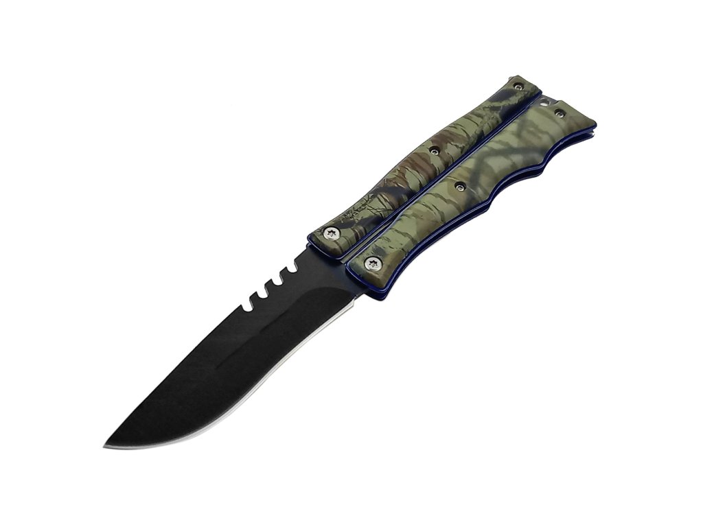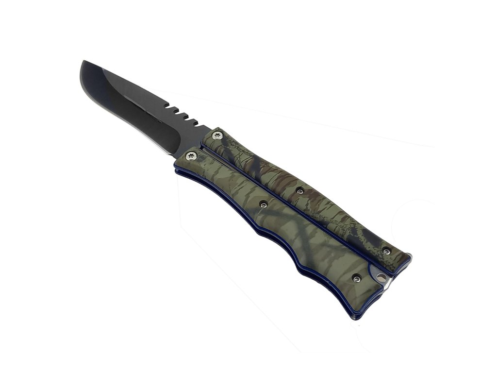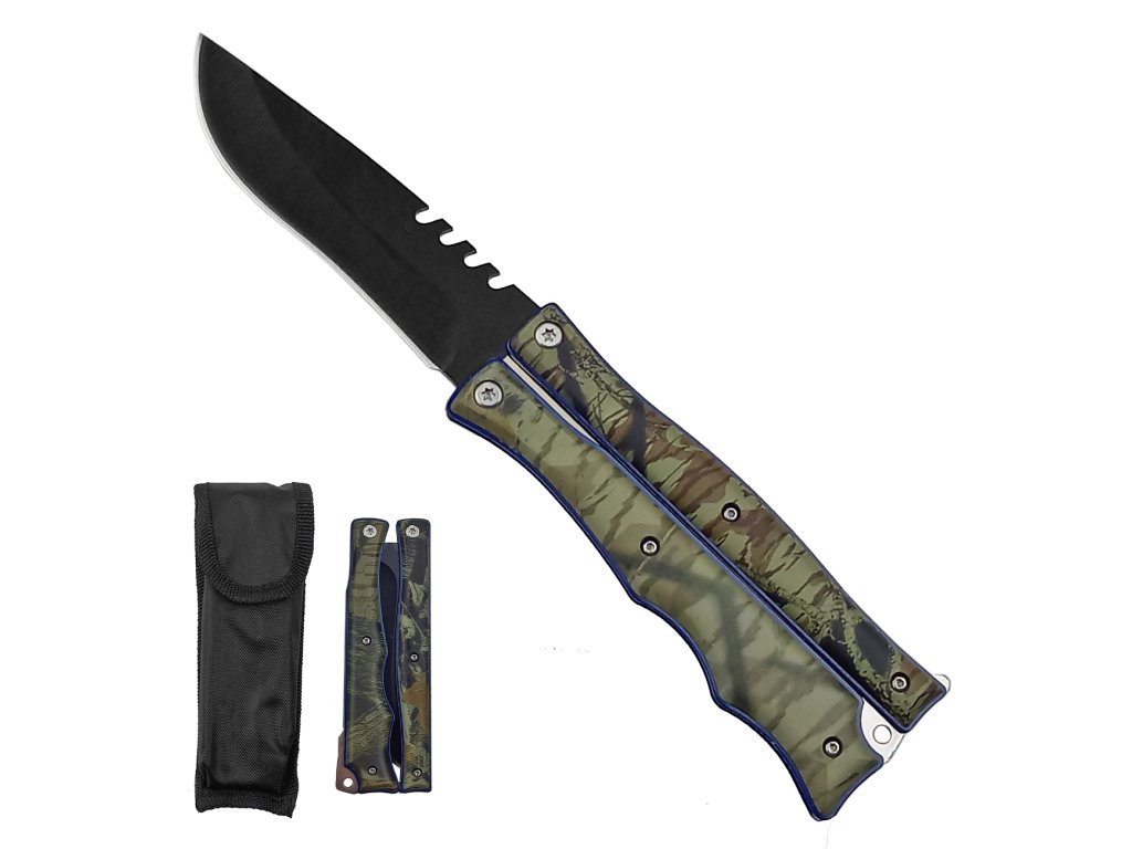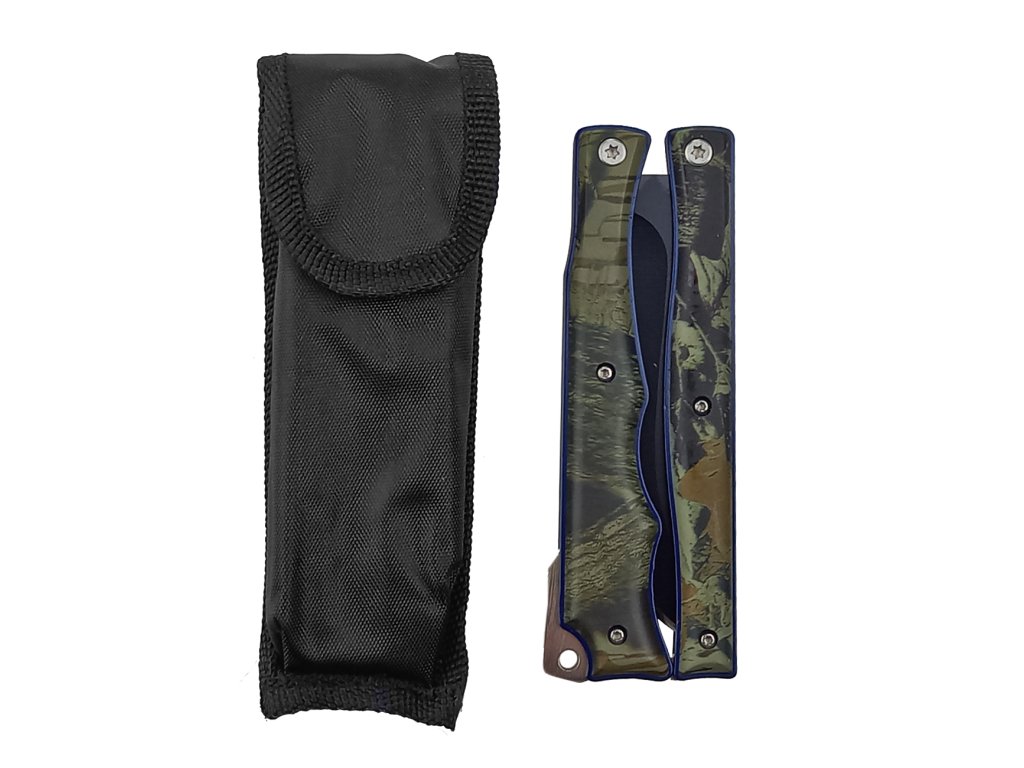 ORIGINALITA - JEDINEČNOSŤ - NÁPAD ... to je rozkladací nôž "JOKER"! ;-) Tento nôž mal s najväčšou pravdepodobnosťou vo svojej zbierke samotný "JOKER", ktorý si na unikátne nože potrpel ... Vás zaujme nielen svojím dizajnom, ale predovšetkým systémom spracovania. Nie je to totiž všedný zatvárací nôž - jeho systém otvárania je úplne unikátny! Dvojitá rukoväť v zavretom stave obklopuje čepeľ ako mušle perlu - jedna časť zhora, druhá zo spodu. Otvorenie sa vykoná odopnutím oboch častí rukoväte / mušlí, ktoré krásne zapadnú dohromady a vytvoria pevný úchop pre Vašu ruku. Vytvorí sa tak malý pevný nôž s dvojitou maximálne silnou poistkou proti spätnému záveru! ;-) Čepeľ noža z nerezovej ocele je štýlovo čierna - a veľmi ostrá. Rukoväť noža "JOKER" z tvrdeného plastu spevnená niekoľkými imbusmi je v nádhernom maskáčovom designe v štýle HUNTER. Príjemne sa drží vďaka prirodzenému tvarovaniu. Na konci rukoväte uvítate otvor pre prípadný povrázok či inú tkaninu. K nožu je dodávané štandardné nylonové puzdro, vďaka ktorému môžete predĺžiť životnosť noža (nestratí sa) :-)Dodatočné parametre