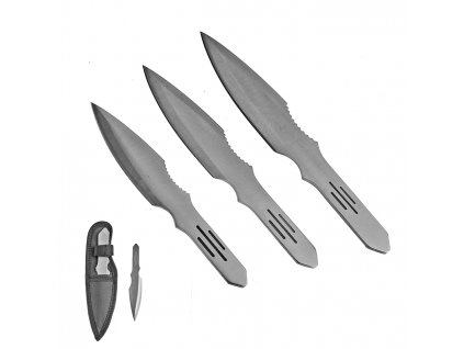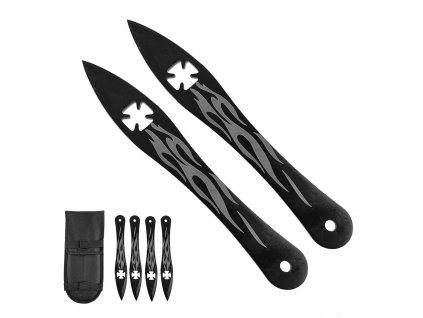 Vrhacie nože "CROSS IN FIRE" 4 kusy Sada obsahujúca 4 nože šípkovitého tvaru, obsahujúca nielen štýlový dizajn, ale aj v pomere cena/výkon aj nadpriemernú kvalitu aj spoľahlivosť v jednom. Táto sada 4 vrhaciech nožov je určená pre milovníkov zábavy a športových aktivít. Každý nôž je vyrobený z nerezovej ocele 3cn13, čo potvrdzuje pevnosť a odolnosť. Navyše, ostrenie z oboch strán zaisťuje neuveriteľnú presnosť pri vrhaní. Každý nôž v tejto sade meria 14,1 cm. a váži iba 35 gramov. Každý nôž je výrazne ozdobený strieborným plameňom a štvorhranom, čo dodáva zbraniam nezameniteľný a výnimočný vzhľad. Súčasťou balenia je pevné púzdro z nylonu v čiernej farbe, ktoré zaisťuje bezpečnejšie uloženie nožov a ľahké prenášanie. Celkovo táto sada vrhaciech nožov sa stane vašim tajným zbraniam pre športové hry a relaxáciu v prírode. Tento nôž je vhodný pre začiatočníkov a vrhanie do mäkkých terčov mäkkým dopadom. · Nôž vhodný pre začiatočníkov · Vrhajte do mäkkých terčov (kartón, molitan…)