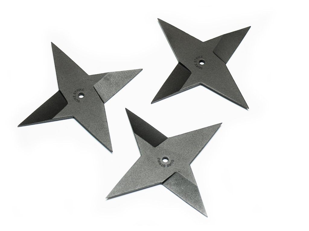 Ťažká vrhacie hviezdice - od svetovej značky Cold Steel! Vrhacia hviezdica SURE STRIKE je novodobá forma tradičných zbraní, ktoré dlhé stáročia používali v Číne a Japonsku. Je vyrobená z jedného kusa ocele (1055 Carbon) a vydrží celé roky aj pri častom tréningu. Vďaka kvalitnému materiálu sa nemusíte báť ich poškodeniu, napríklad ulomenie alebo ohnutie špičky. Balenie obsahuje 3 kusy a nie je teda potrebné chodiť zbierať hviezdicu po každom hode, čo je super! Ťažká vrhacia hviezdica je určená ako pre začiatočníkov, tak pre pokročilých. Vďaka väčšej váhe sa zabodáva skutočne s drvivou silou a lieta rovno aj na väčšie vzdialenosti. Vďaka hrotom na všetkých štyroch stranách sa zabodne prakticky zakaždým. Vynikajúca na tréning presného hádzania na terč.