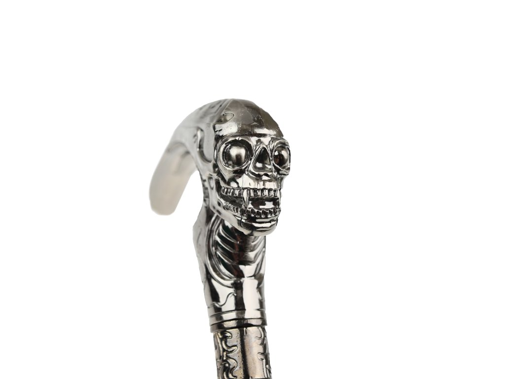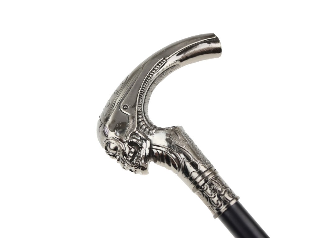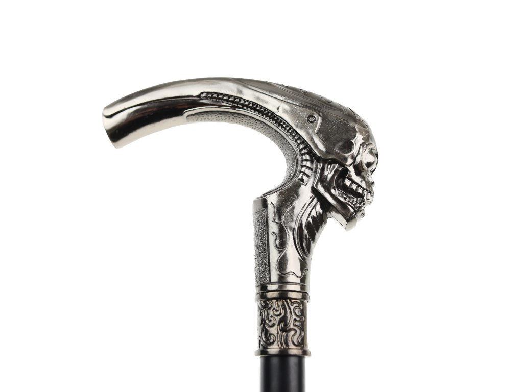 Vychádzková palica so skrytou čepeľou "ALIEN 4" Precízne prevedená vychádzková palica so skrytou čepeľou, ktorej hlavica je v štýle hlavy z filmu Votrelec 4. Môžete sa kochať úžasnými detailmi tejto celokovovej hlavy Votrelca. Na prvý dotyk si túto palicu zamilujete. Vďaka tvaru rukoväte (respektíve hlavy Votrelca :D ) sa palica úplne krásne drží. Poskytne Vám oporu na dlhých vychádzkach a pri nich navyše budete mať v ruke hlavu Votrelca. Ale nielen ju! Po odskrutkovaní hlavy na Vás vykukne 30,5 cm dlhá čepeľ. Tá je v tejto verzii ostrená!!!. Celá čepeľ je vyrobená z nerezovej ocele N420. Telo palice je vyrobené z kvalitnej hliníkovej zliatiny, do ktorej sa môžete plnou váhou bez obáv oprieť! Celá palica má dĺžku 93 cm. Na konci palice sa nachádza gumová pätka, ktorá tlmí nárazy a perfektne drží na klzkých povrchoch. Skrátka sa jedná o plne funkčnú palicu so skrytou čepeľou, ktorá sa vyníma svojimi úchvatnými detailmi Votrelcovi hlavy. Poslúži ako na vychádzke, tak ako dekorácia vo Vašej zbierke. Ide skôr o doplnok, nie o zdravotnícku pomôcku.