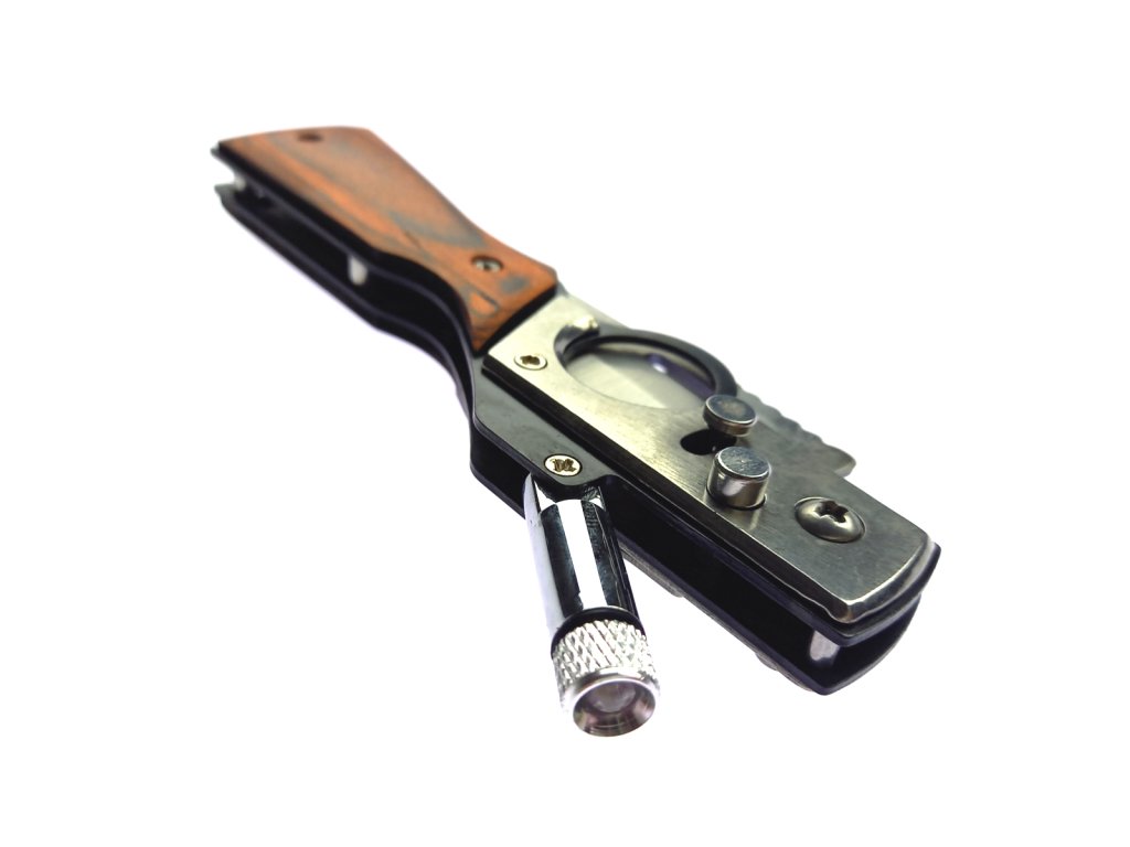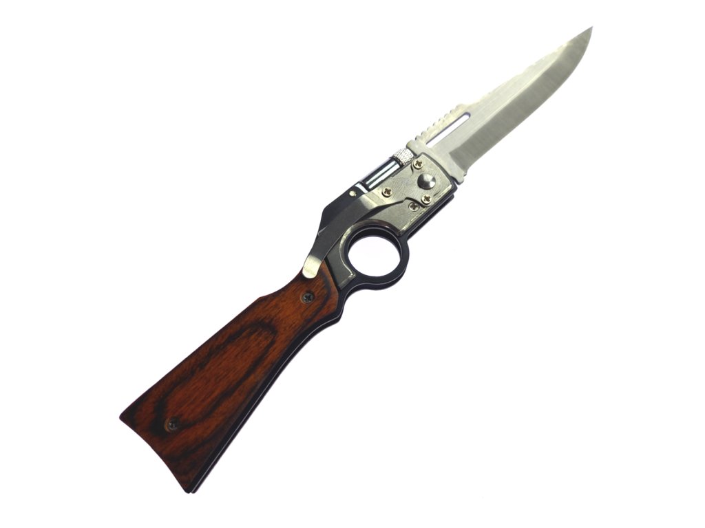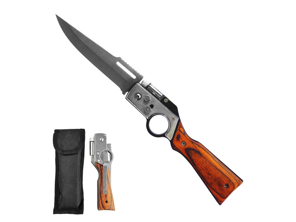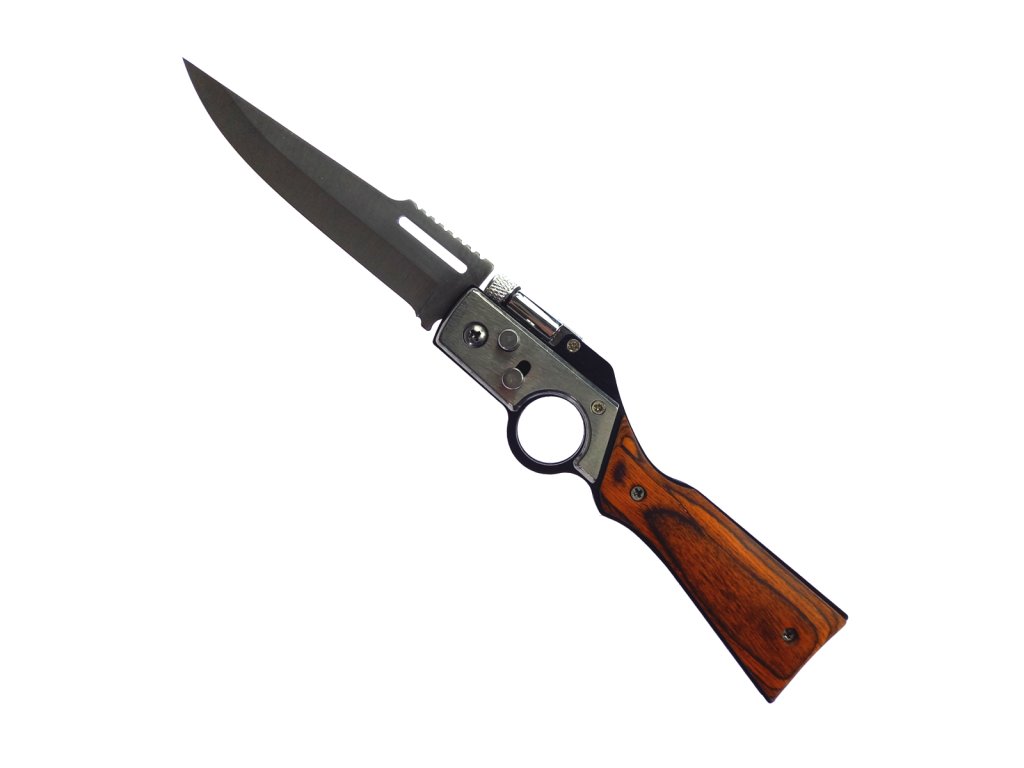 Vystreľovací nôž "WINCHESTER 2.0" s baterkou Nová a vylepšená verzia nášho vystreľovacieho noža "WINCHESTER"! Tento nôž bol upgradovaný zo zaujímavého a cool kúsku na ešte lepšie a vychytanejšie! Nôž "WINCHESTER 2.0" je rovnako ako jeho predchodca vystrelovák, pripomínajúci legendárnu pušku Winchester. Nôž disponuje očkom pre prst, ktoré poskytuje pevnejší úchop. Na strane noža sa nachádza klip na nosenie vo vrecku. Nôž má poistku proti nechcenému otvoreniu aj zatvoreniu, ktorá sa obsluhuje pohodlným posúvaním z jednej strany na druhú. Hlavným ťahákom tejto verzie je malá, na svoje rozmery napriek tomu silná baterka, ktorá sa aktivuje otočením skrutkovacej časti s diódou. Nôž tak pripomína mini pušku alebo bajonet s optikou! Pánt u baterky je navyše pohyblivý až do uhla viac ako 120 stupňov! Môžete ju teda nasmerovať a posvietiť, kam sa vám zachce. Súčasťou noža je aj pevné nylonové puzdro v čiernej farbe, ktoré je možné tiež nosiť na opasku.Dodatočné parametre