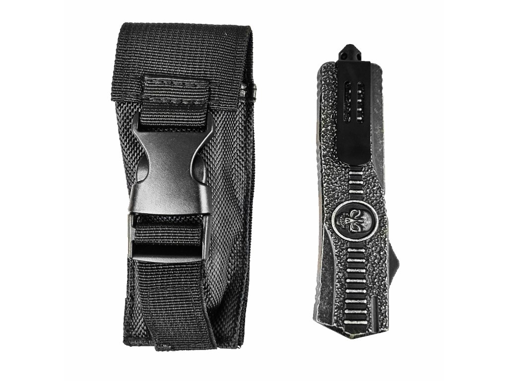 Vystreľovací OTF nôž "SKULL-SLICER" s puzdrom Predstavejeme vám náš najnovší prírastok do rodiny OTF nožov - vysoko kvalitný, celokovový OTF vystreľovací nôž "SKULL-SLICER". OTF je plne automatická funkcia, ktorá umožňuje rýchle a jednoduché otvorenie aj zatvorenie čepele jediným stlačením tlačidla. Tento nôž je navrhnutý tak, aby spĺňal všetky vaše potreby a očakávania. Hlavnou prednosťou tohto noža je jeho 8,5 cm dlhá čepeľ vyrobená z vysoko kvalitnej nerezovej ocele 3cr13. Vďaka tejto oceli je čepeľ odolná proti korózii a zaisťuje dlhú životnosť noža. Navyše je čepeľ obojstranne ostrená. Ďalšou výhodou tohto noža je hrot na rozbitie skla. Táto funkcia sa môže ukázať ako veľmi užitočná v núdzových situáciách, napríklad pri havárii automobilu. Hrot je pevne integrovaný do rukoväte noža a je možné ho kedykoľvek použiť. Aby ste mohli nôž nosiť stále pri sebe a mať ho po ruke v každej situácii, dodávame ho s nylonovým puzdrom na opasok. To umožňuje pohodlné nosenie noža a zároveň ho chráni pred poškriabaním či iným poškodením. Nôž navyše sám o sebe disponuje klipom na opasok, takže ho možno nosiť bezpečne aj bez puzdra. Celkovo možno povedať, že tento OTF vystreľovací nôž je skvelou voľbou pre každého, kto hľadá spoľahlivý a výkonný nástroj. Jeho vysoko kvalitná konštrukcia a praktické funkcie ho stavajú do popredia medzi konkurenciou.Dodatočné parametre