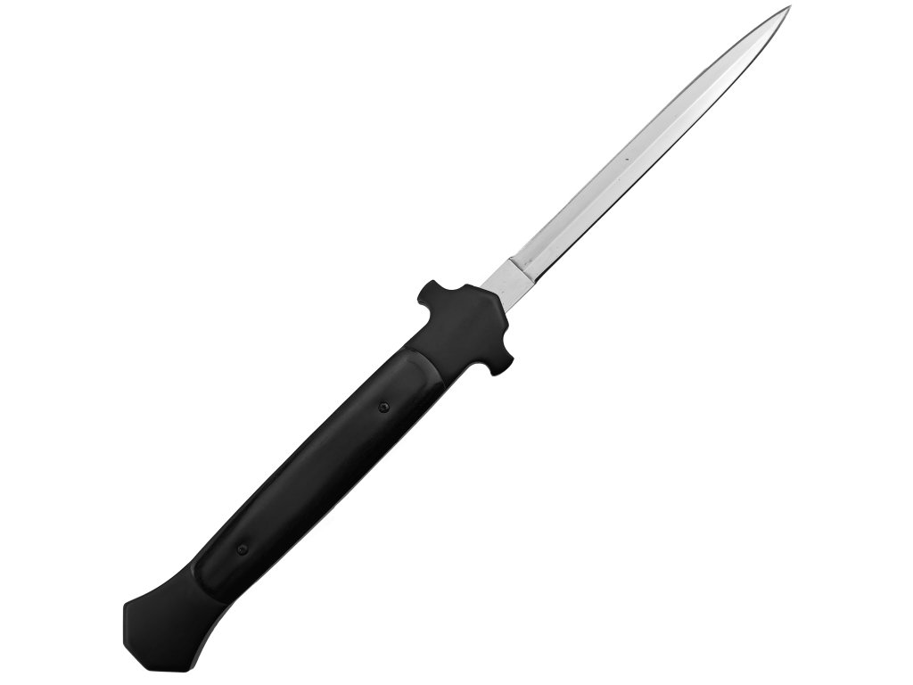 Dlhý čelne vystreľovací OTF nôž (neuveriteľných 32,7 cm) s dvojbritou čepeľou s dĺžkou 14,5 cm. Tento nôž je inšpirovaný klasickým Talianskym stilettom a jeho vzhľad zaujme hneď na prvý pohľad. Nôž je vybavený mechanizmom, ktorý umožňuje rýchle a ľahké vysunutie čepele pri jedinom pohybe. Je to ideálna voľba pre tých, ktorí ocenia rýchlosť a efektívnosť.