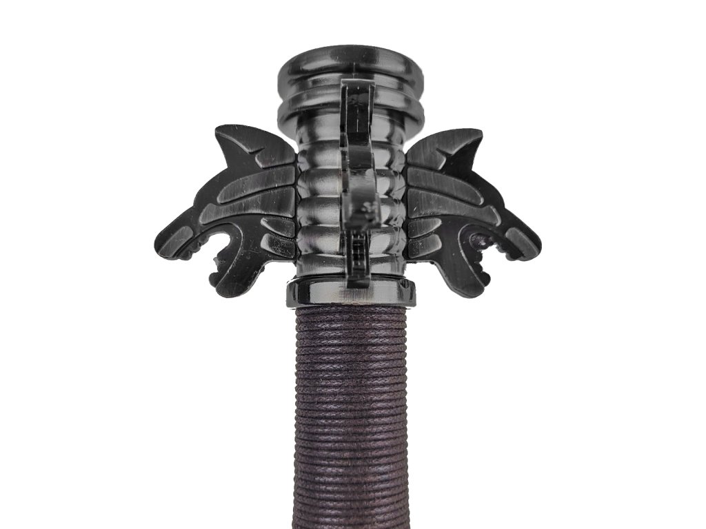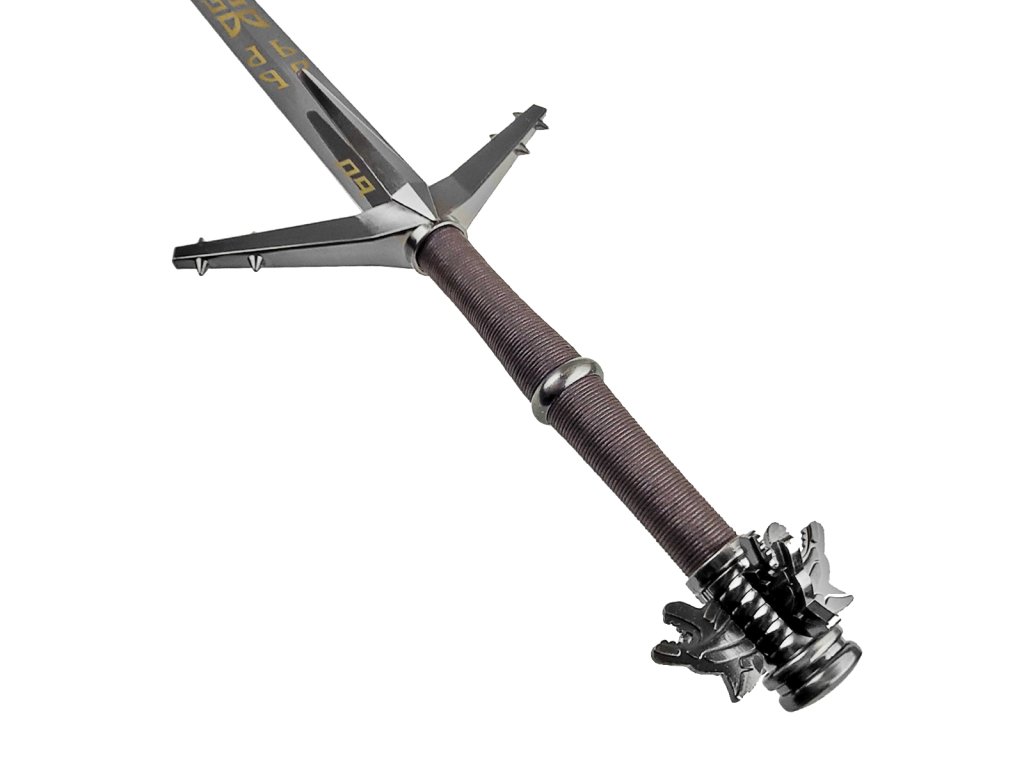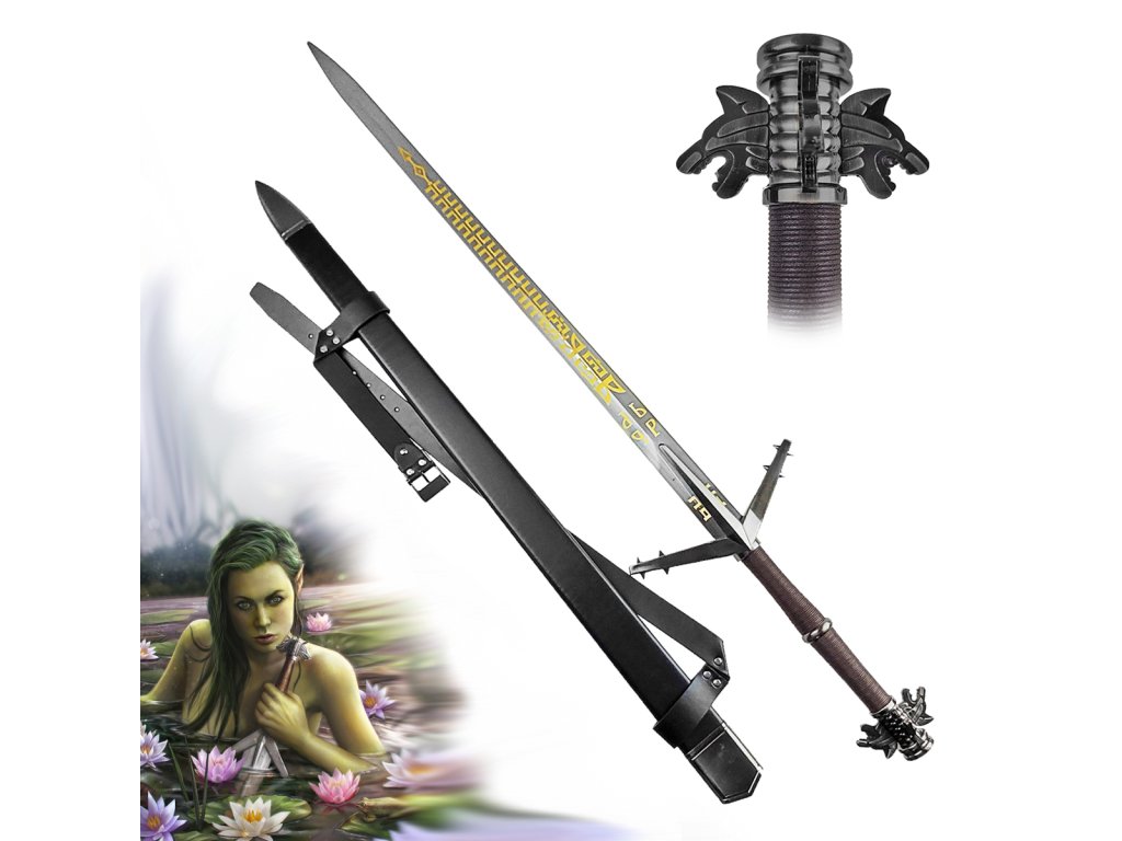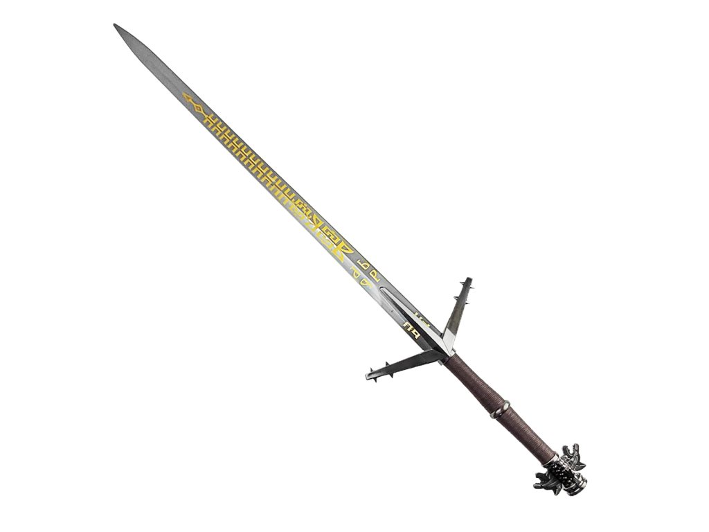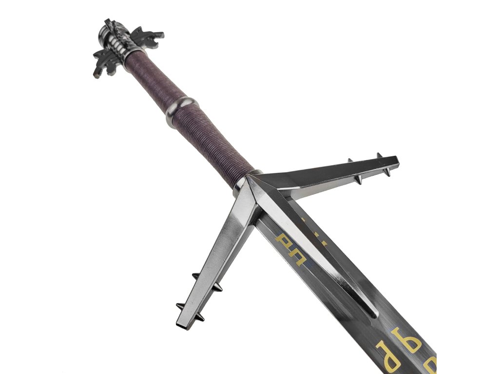 WITCHER/Zaklínačský strieborný meč "A SCARRED WOLF" s chrbtovým popruhom Predstavejeme Vám neuveriteľnú repliku strieborného meče z hry Zaklínač 3 Divoký hon, ktorý vás úplne pohltí svojim nádherným a detailne prepracovaným dizajnom. Táto replika je nielen skvelým vizuálnym zážitkom, ale aj dokonalým spôsobom, ako si priviesť kúsok Zaklínačského dobrodružstva do Vášho sveta. Celý meč, merací impozantných 120,5 cm, je vyrobený v kombinácii nerezovej ocele, dreva a eko kože. Táto kombinácia materiálov zaisťuje nielen vysokú odolnosť, ale aj autentickosť a estetiku. Čepeľ, dlhá 89 cm, je síce tupá, avšak jej zdobenie ornamentmi v zlatej farbe pridáva meču vznešenosť a pôsobivosť. Zlaté ozdoby na čepeli zvýrazňujú jeho jedinečný charakter. Rukoväť, omotaná tenkým povrázkom a je napojená k štýlovej záštite v tvare písmena V. Táto záštita dodáva jedinečný estetický prvok. Zaujímavým dizajnovým akcentom je hruška na konci rukoväte, zdobená zo všetkých štyroch strán vlčími hlavami. Tento meč v hre nielen využíval Biely vlk Geralt z Rivie, ale tiež ho môžeme vidieť v rukách jeho zjazveného kolegu Zaklínača Eskela. Súčasťou tejto repliky je aj pevná pošva s nastaviteľným chrbtovým popruhom, čo umožňuje ľahké nosenie a ukázanie tejto majestátnej repliky na verejnosti. Zaklínačský meč "A SCARRED WOLF" je nielen nádhernou dekoráciou, ale môže tiež poslúžiť ako nádherný doplnok ku Cosplayi jedného z týchto slávnych Zaklínačov. :)