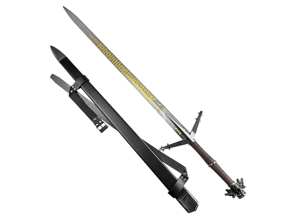 WITCHER/Zaklínačský strieborný meč "A SCARRED WOLF" s chrbtovým popruhom