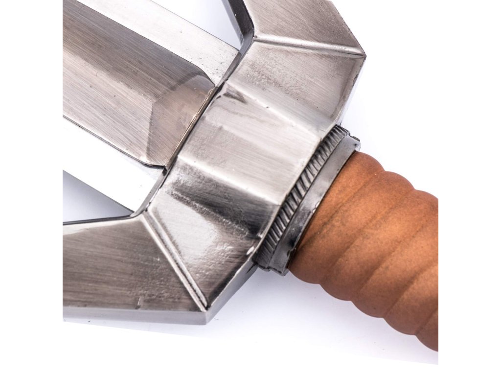 V temných časoch, kedy svet ľudí trýznili neľútostné netvory, bolo potrebné bojovníka, ktorý si s nimi dokáže poradiť. Pre tento účel boli stvorení a cvičený zaklínači. Neľútostní zabijaci príšer, ktorý putujú svetom ponúkajúc svoje služby za odmenu. Zaklínači disponovali neuveriteľnou hybnosťou a silou, vedomosťami kúziel a obrovským arzenálom zbraní. Ich najcennejšou zbraňou bol však strieborný meč, ktorý bol špeciálne vykovaný pre boj s netvormi. Náš tím Vám s radosťou prináša zaklínačský meč "GERALT OF RIVIA". Meč "GERALT OF RIVIA" je veľmi vernou replikou z prvého dielu hernej trilógie The Witcher, v reálnom prevedení a veľkosti 1: 1. Čepeľ meča "Geralt OF Rivie" je vyrobená z kvalitnej nehrdzavejúcej ocele, takže Vám meč ani na daždi nezkoroduje.Na čepeli je krásne vytiahnutý klinový výbrus, ale čepeľ je pre väčšiu bezpečnosť tupá. Čepeľ je vyleštená do vysokého lesku, takže budí dojem pravého strieborného meča. Rukoväť meča "GERALT OF RIVIA" sa nesie v klasickom zaklínačskom štýle teda jednoduchosť a účelnosť. Konštrukcia rukoväte je stavaná na tŕň, na ktorom je krásne spracovaná rukoväť z veľmi odolného plastu. Masívna záštita z nerezovej ocele je presným vyobrazením originálu .Hlavica meča je takisto z nerezovej ocele, v ktorej tele je reliéf hlavy vlka, čo je symbolom zaklínačskej školy.- Perfektné spracovanie li>