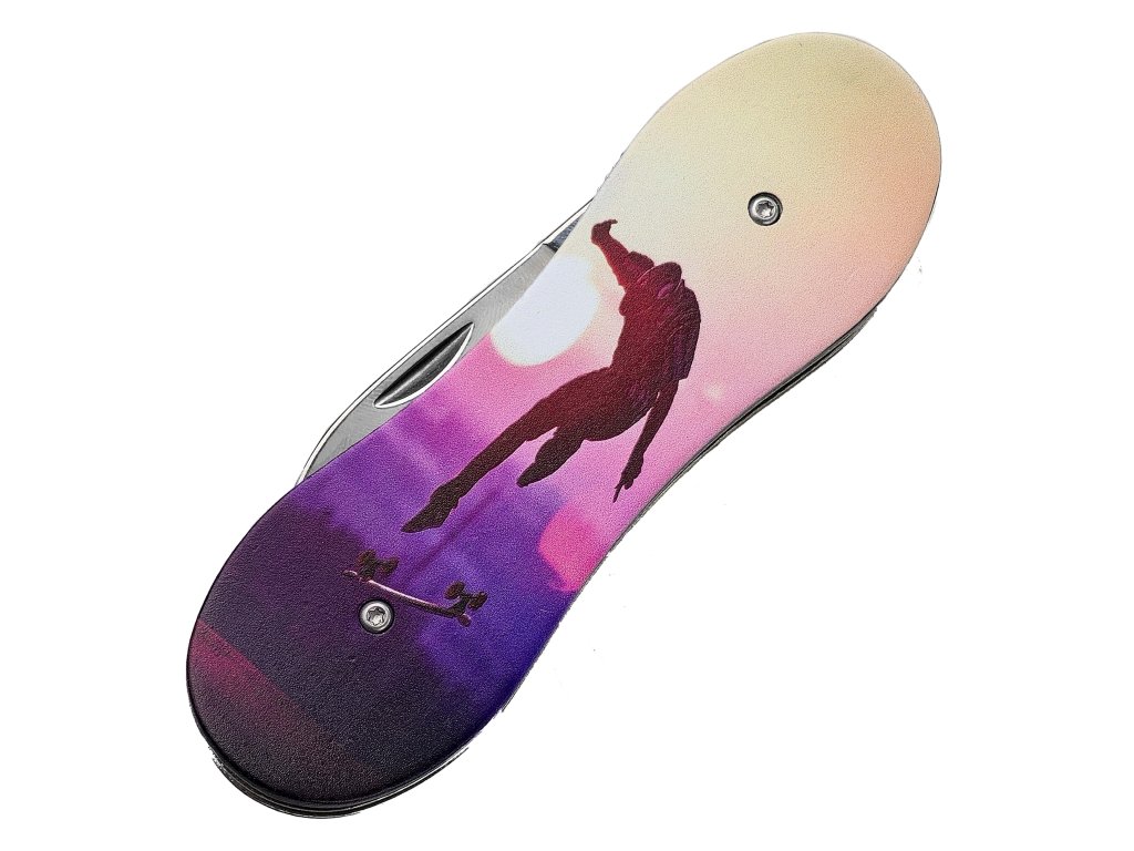 Ukáž štýl aj pri každodennom nosení! Tento vreckový nôž inšpirovaný skateboardom a street artom zaujme na prvý pohľad – jeho rukoväť pripomína tvar skateboardu a je potlačená obojstranne 3D grafikou v štýle Tony Hawka a skateboardu. Perfektná voľba pre každého, kto miluje extrémne športy, slobodu a urban culture.