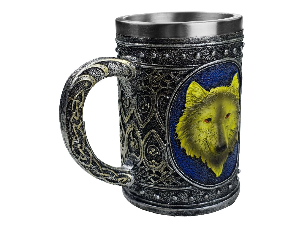 Unikátny hrnček, ktorý Vás prenesie do fantasy sveta. S výškou 14,5 cm a priemerom cca 8 cm pojme až 400 ml Vášho obľúbeného pitia. Jeho robustný design zdobí detailné vyobrazenie mocného vlka, ktorý symbolizuje silu a odvahu.